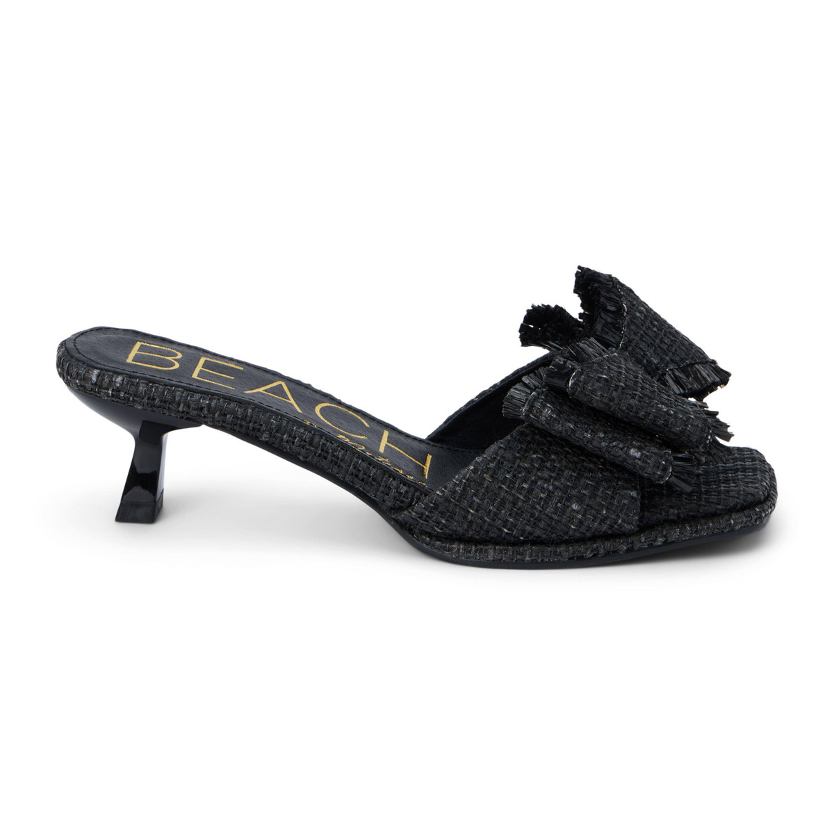 Vegan, kitten heel sandal with bow detail.