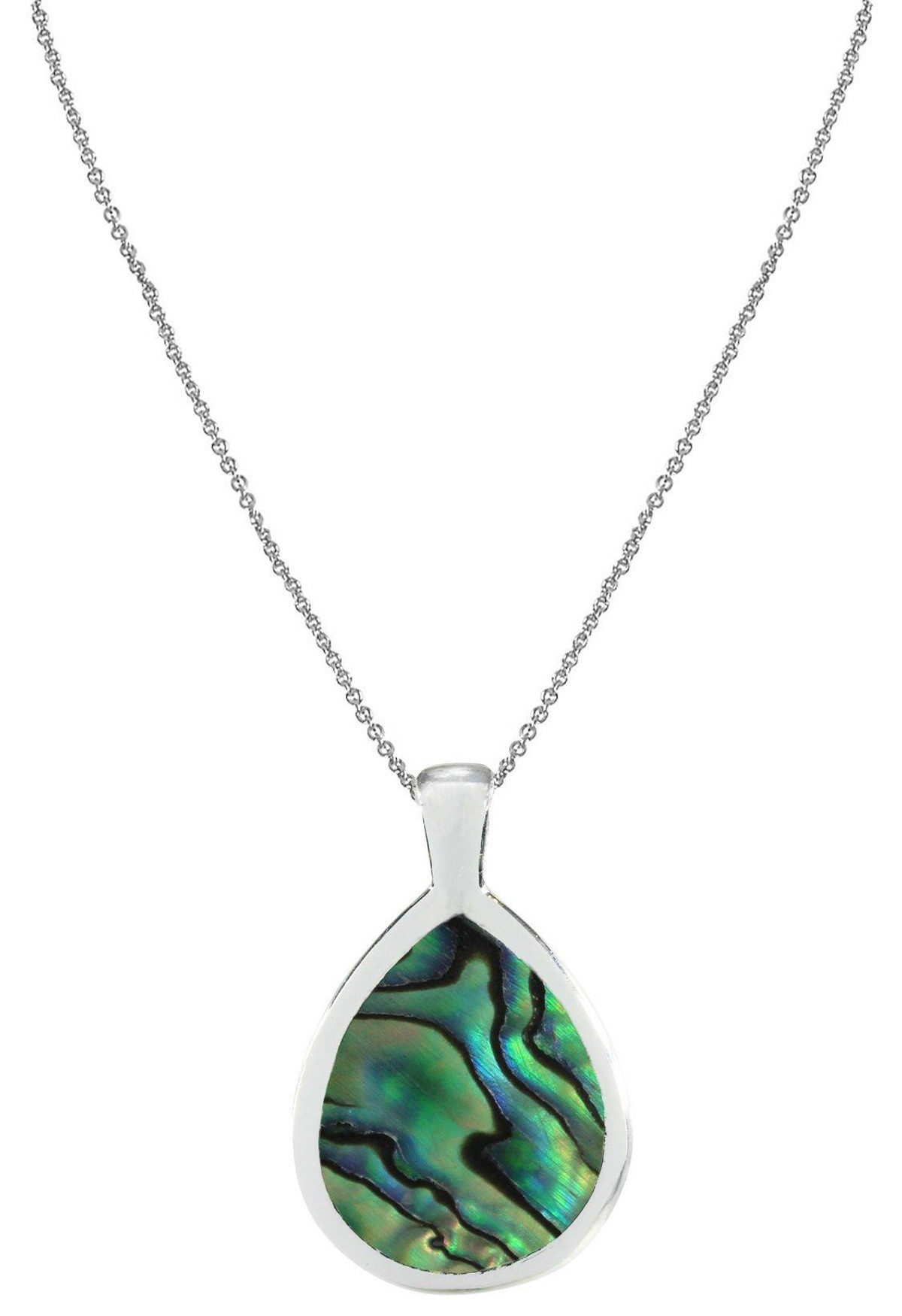 Beach Chic necklace features a silver plated abalone teardrop pendant.