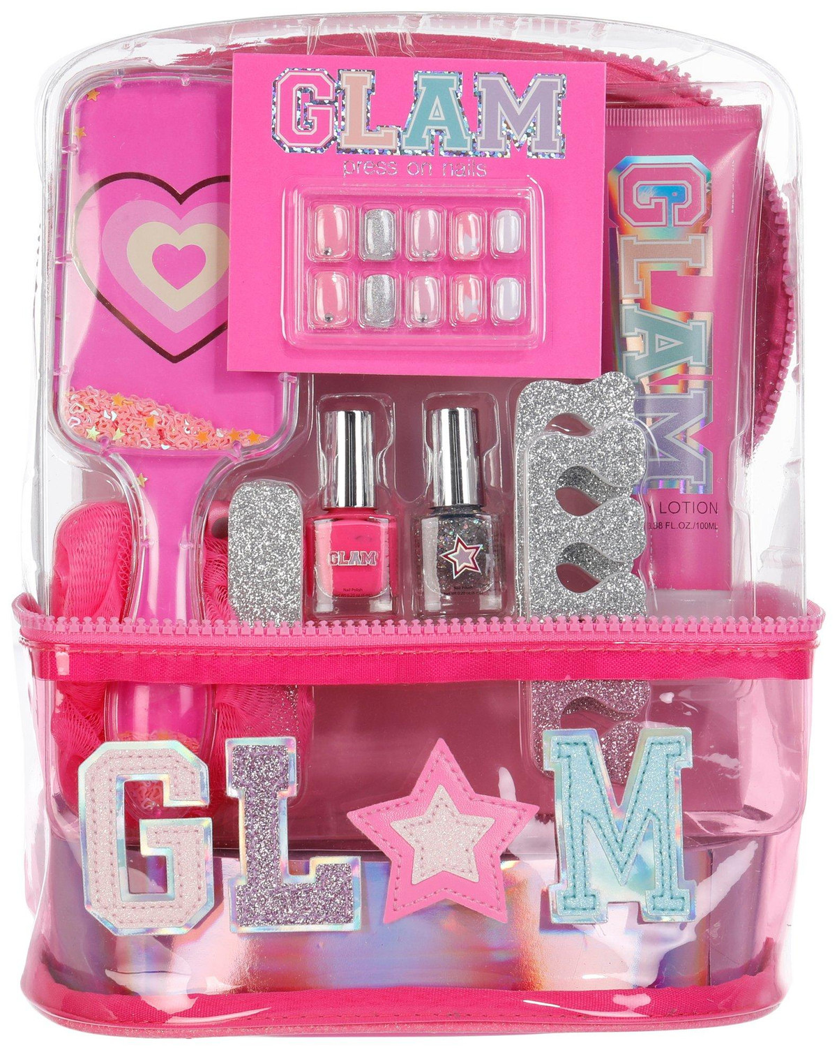 The Next Glam Bag is a fun and stylish beauty set designed especially for kids ages 6 and up. This all-in-one glam kit includes a beauty cosmetic bag, body lotion, two nail polishes, a hair brush, a soft loofah, ten press-on nails, a nail file, and two toe separators. Perfect for imaginative play and beginner beauty routines, it encourages creativity and self-expression. With vibrant colors and kid-friendly accessories, this glam bag makes a great gift and offers hours of fun pampering.