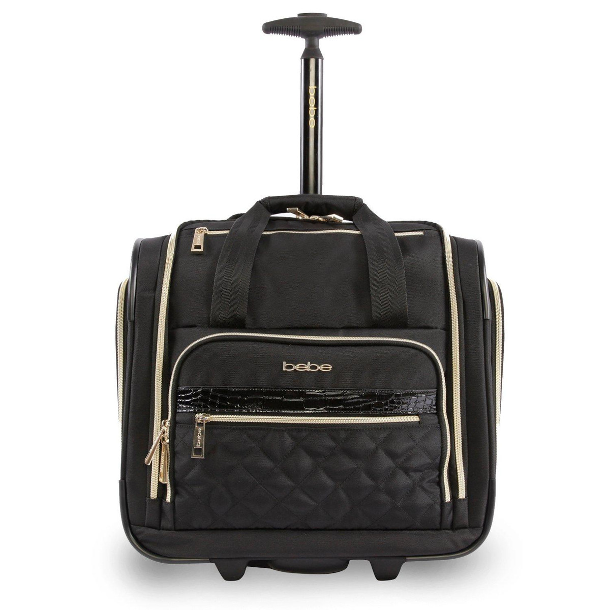 Travel in style with the Bebe Leena under the seat luggage. Compact in size, The luggage provides useful storage space, a telescoping handle and smooth rolling wheels. This carry-on bag is designed to fit underneath most airline seats, so you can access everything you need while flying. Suitcase measures 15 in. x 15 in. x 8.5 in.