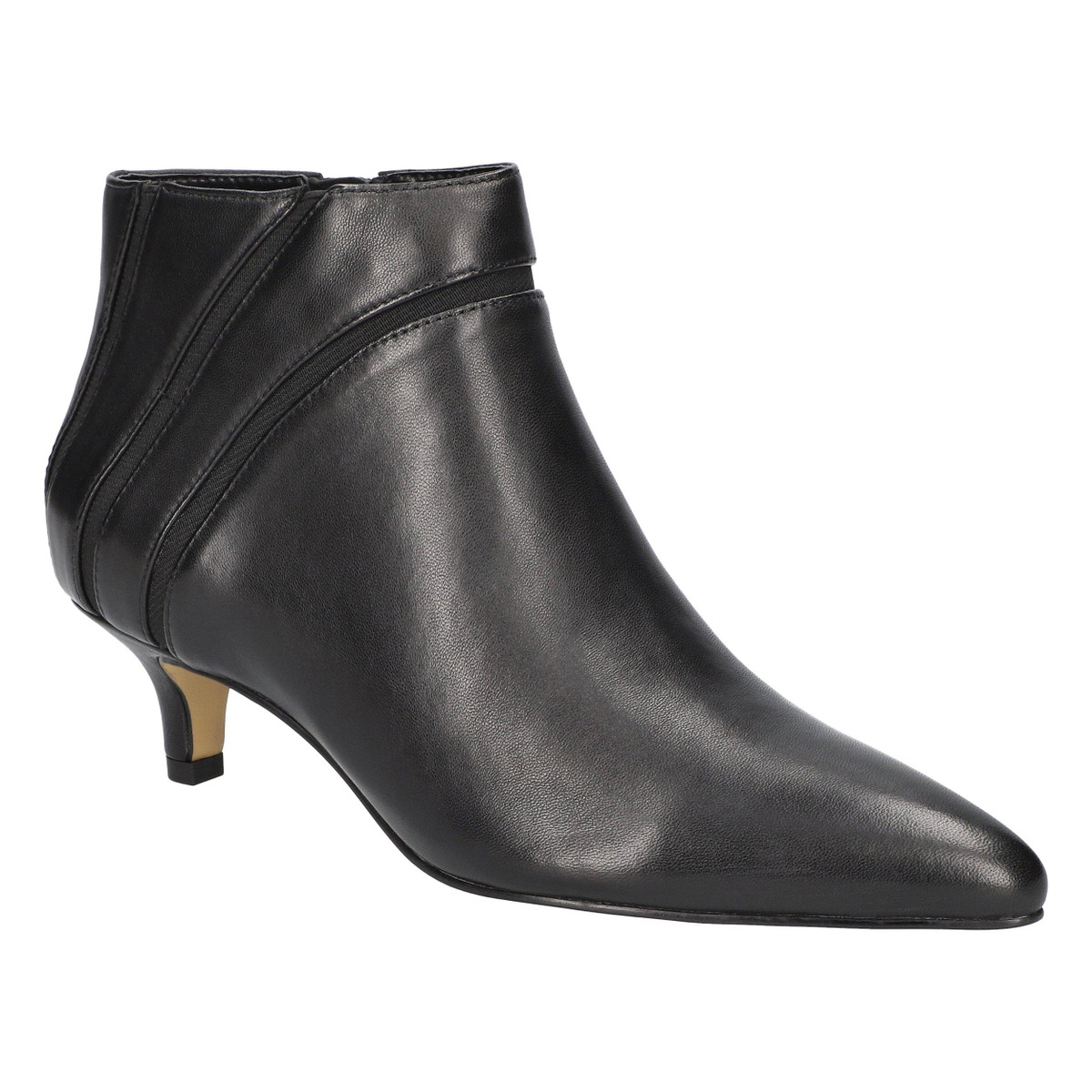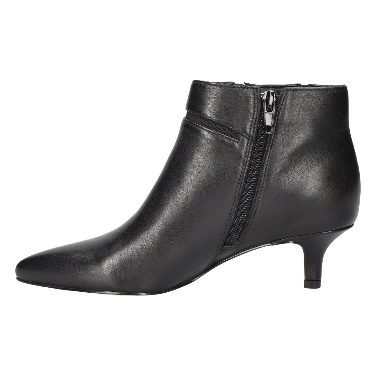 Find the perfect balance of simplicity and sophistication with the Faraday by Bella Vita contemporary leather dress shootie. Its pointed-toe design radiates timeless elegance, while the on-trend kitten heel brings a modern touch that is both practical and stylish. The padded insole provides added comfort, and the inside zipper offers an easy on/off. Elevate any dress outfit effortlessly with this boot.