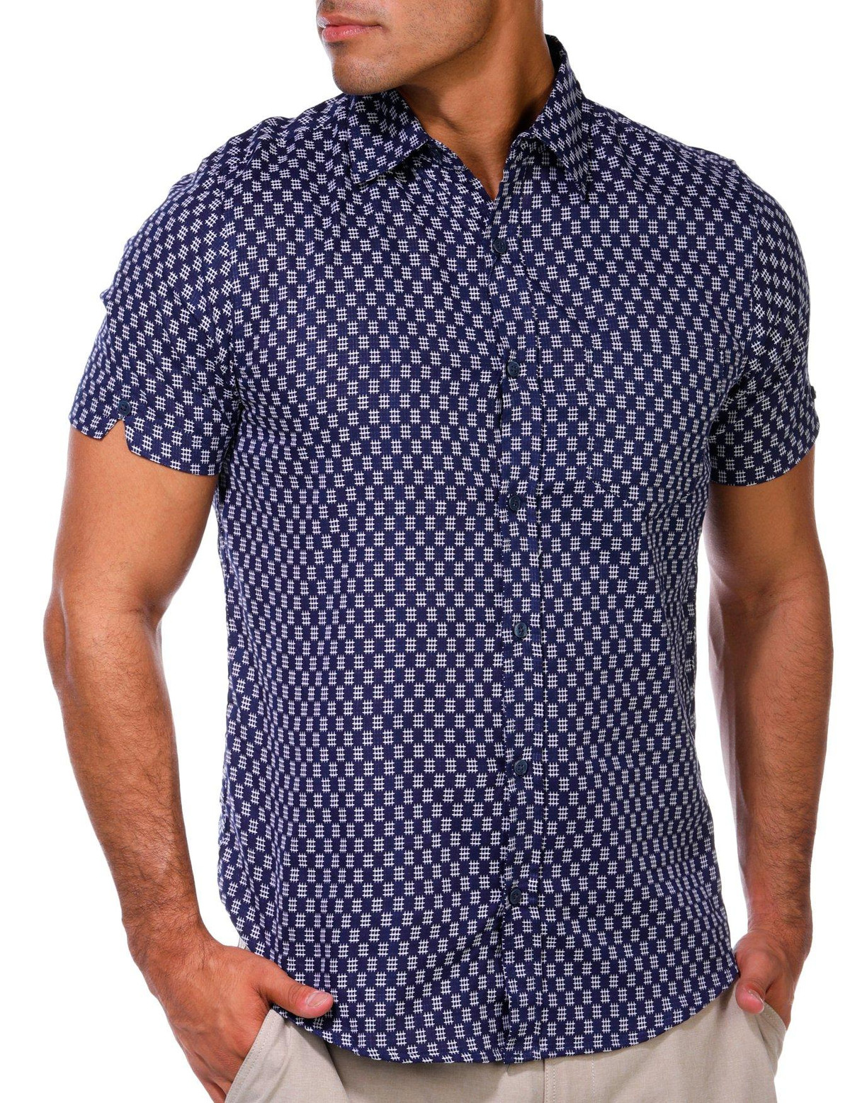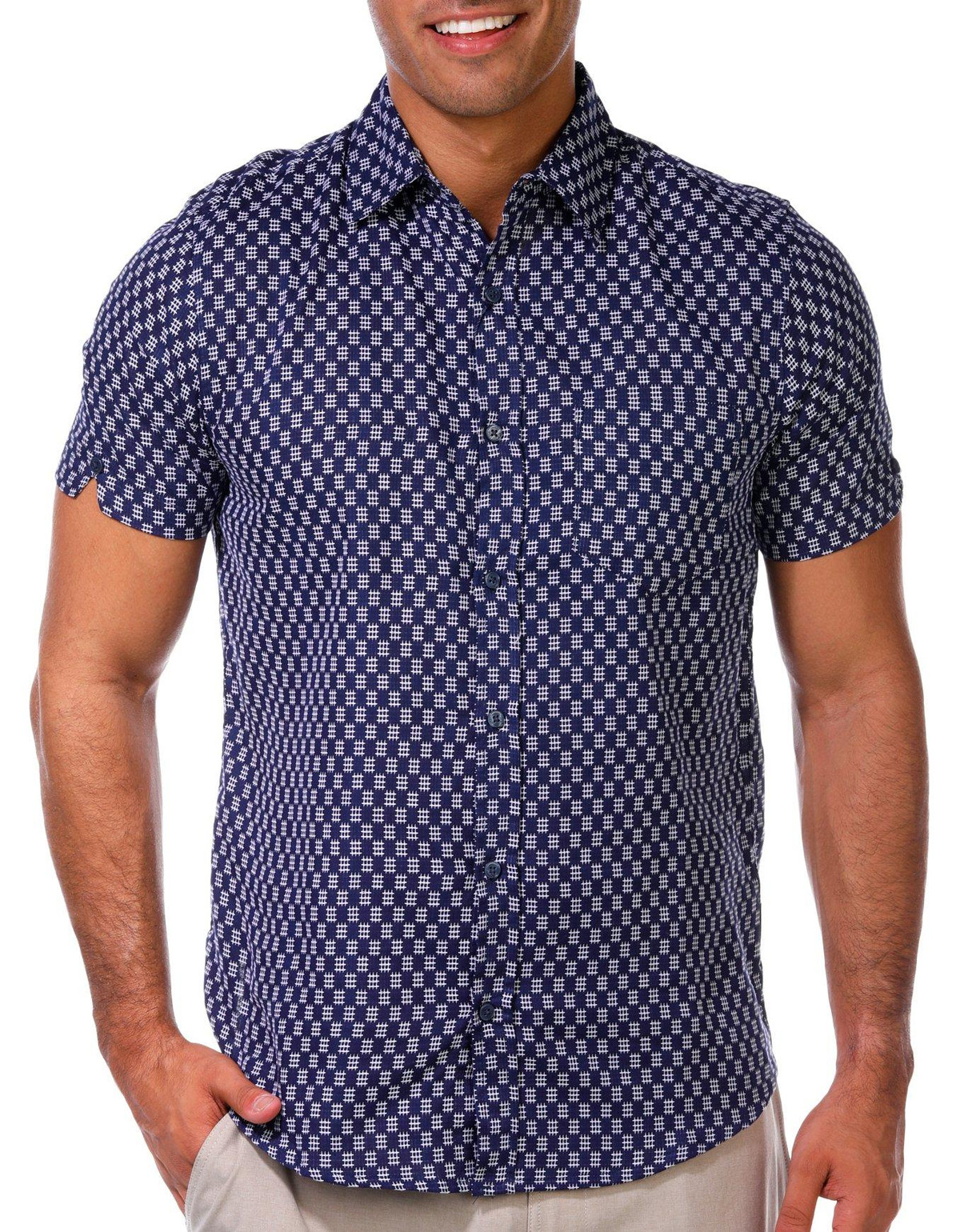 Ben Sherman Men's Buttoned Short Sleeve Waffle Check Shirt