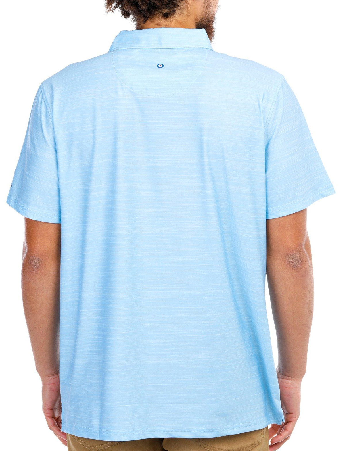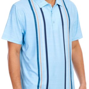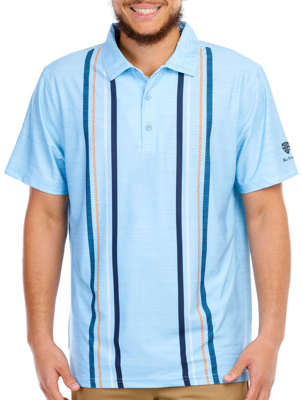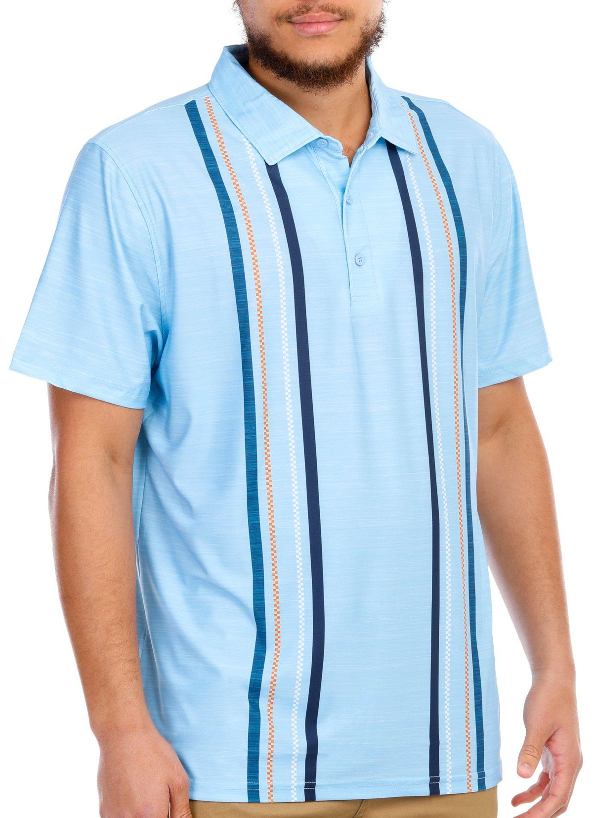 Look your very best, whether out on the course or around town, in this super stylish short sleeve sport polo. It features an eye-catching vertical stripe print pattern design, collared polo style neckline, and super soft breathable fabric. Fabrication is 88% polyester, and 12% spandex.