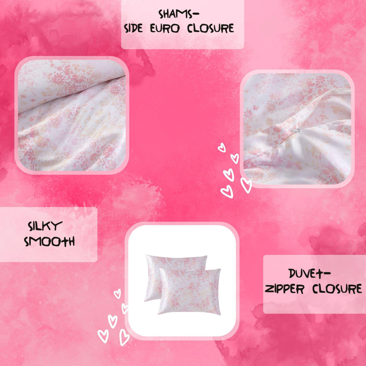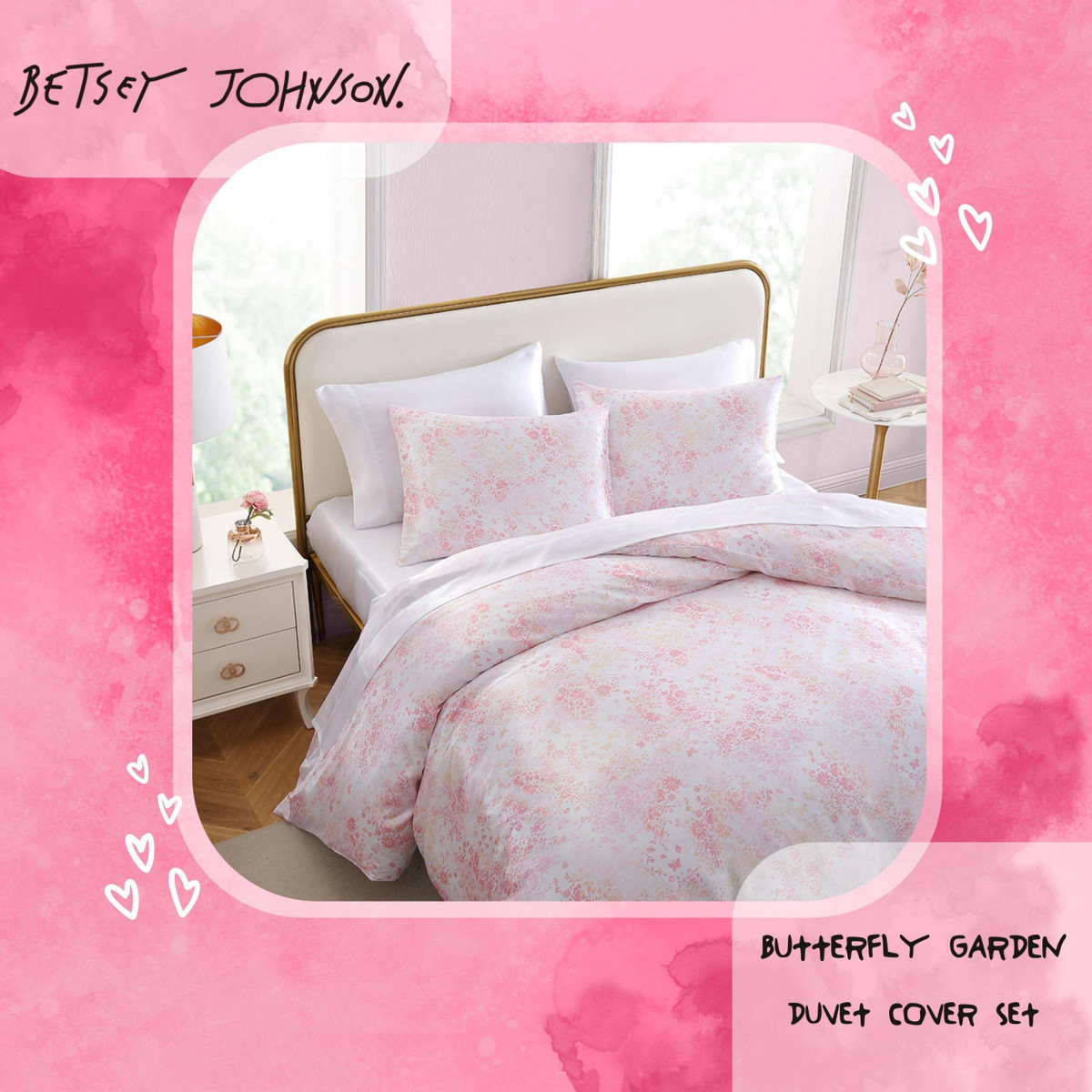 Float into dreamland with the Betsey Johnson Butterfly Garden satin duvet set! With fluttery butterflies and blooming florals in pink and yellow ombré, it is glam with a wink. Silky smooth for happy hair and skin, this set is cool, cozy, and full of charm. Insert sold separately. Machine washable for easy care.