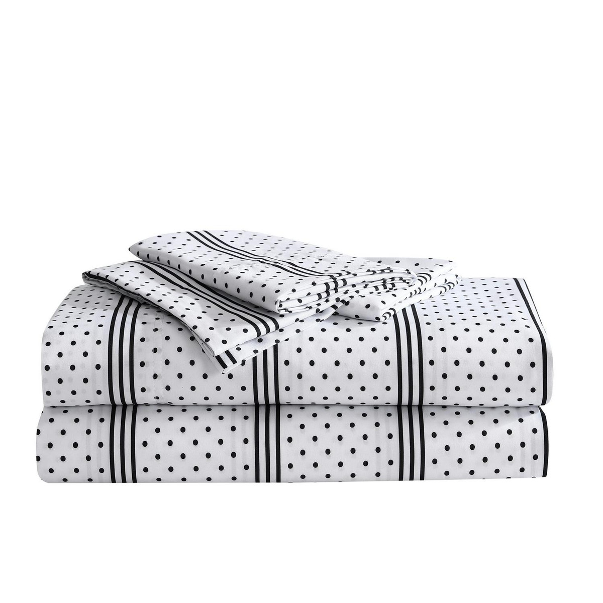 Brighten your bed with Betsey Johnsons Dots and Stripes Sheet Set! Made from ultra-soft microfiber, these sheets are fade, stain, and wrinkle resistant, perfect for everyday flair. With playful patterns from skulls to florals, they bring Betseys bold style to life. Mix and match with a Betsey comforter for the full look! Machine washable for easy care.