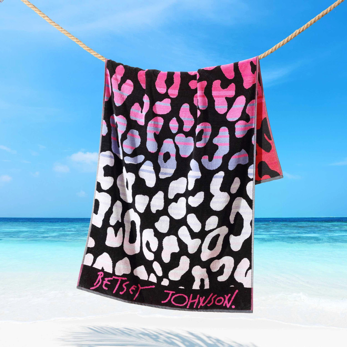 Make a bold statement at the beach or pool with the Betsey Johnson Ombre Leopard Beach Towel. Designed for both style and functionality, this generously sized towel provides a soft and absorbent feel, making it the perfect companion for lounging by the water. Crafted from a premium blend of materials, it offers durability, softness, and a lightweight feel for easy carrying. Oeko-tex standard 100 certified, ensuring quality and sustainability. Measures 36 in. x 72 in.