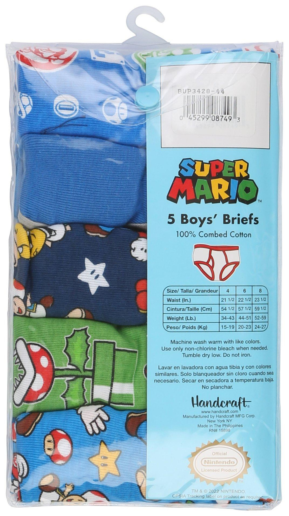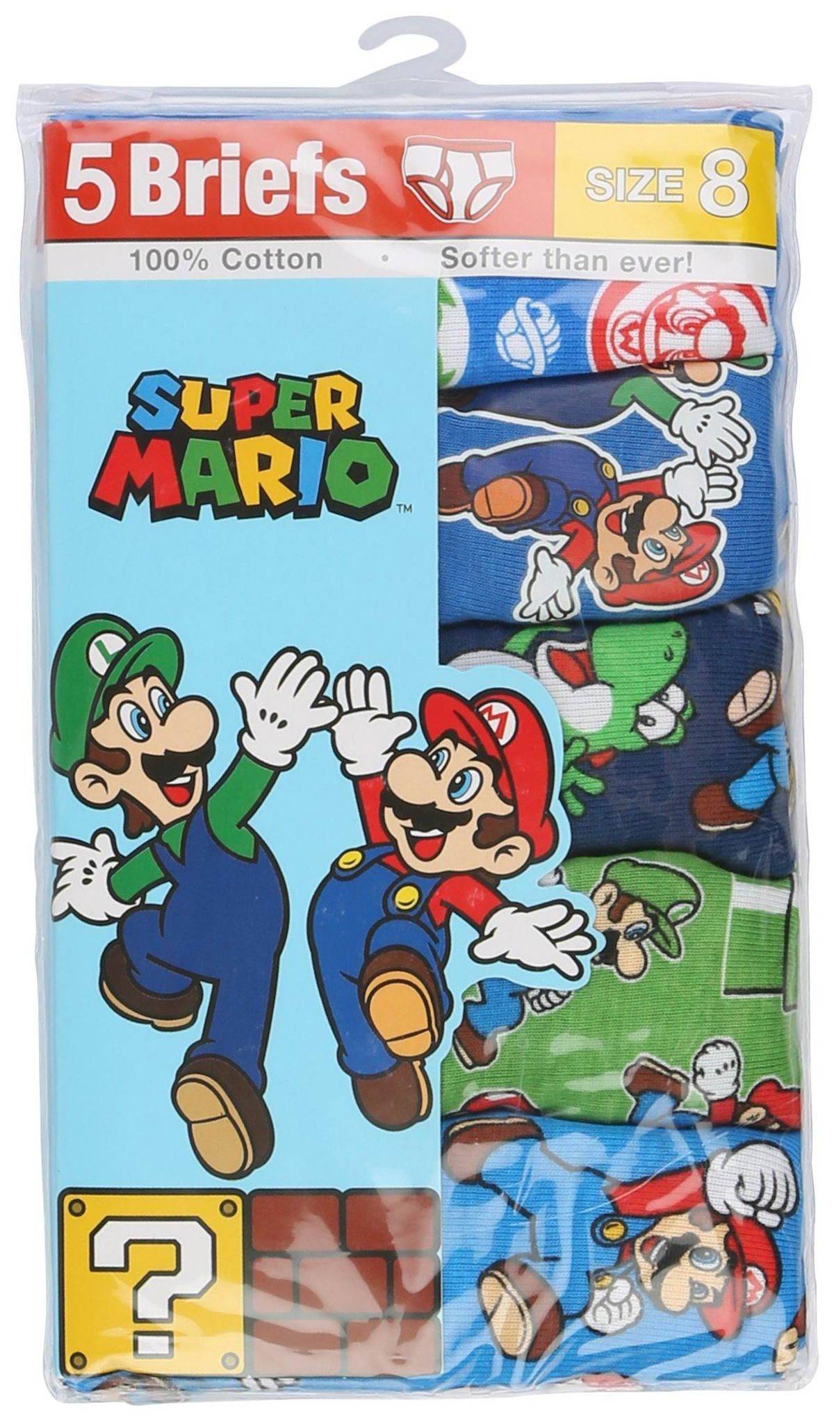 He’ll enjoy these colorful briefs by Super Mario Brothers! Five-pack briefs feature durable elastic bands, moisture wicking properties, stretch fabric, and a variety of prints.