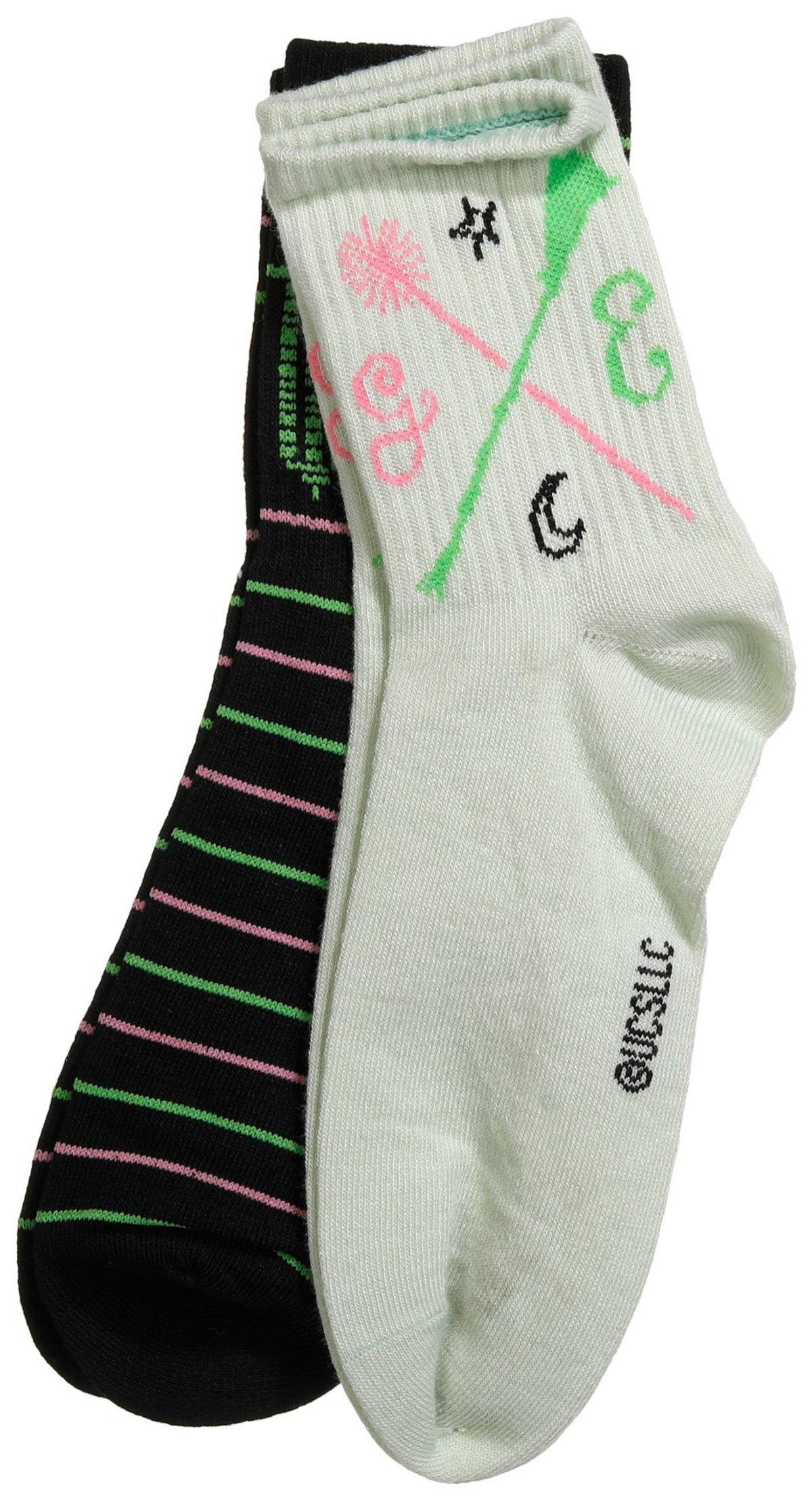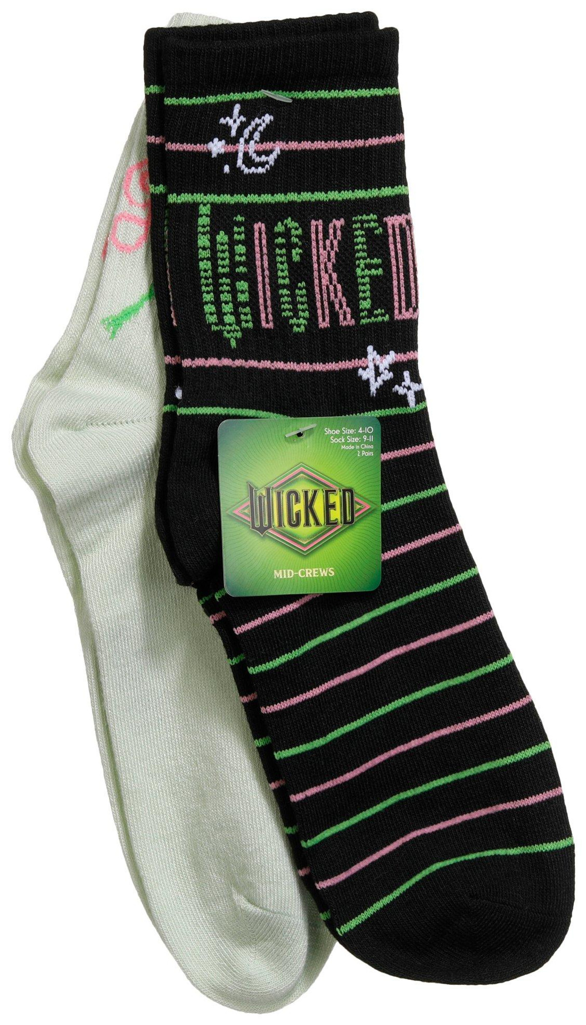Step into style with the Big Girls 2 Pk Wicked Mid Crew Socks. Crafted from a comfortable blend of polyester and spandex, these socks feature two Wicked-themed prints that add a fun and magical touch to any outfit. Designed to fit shoe sizes 4-10 they offer a perfect fit for little feet. Ideal for everyday wear, these mid crew socks combine comfort, durability, and whimsical charm.