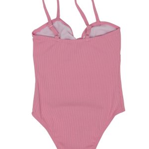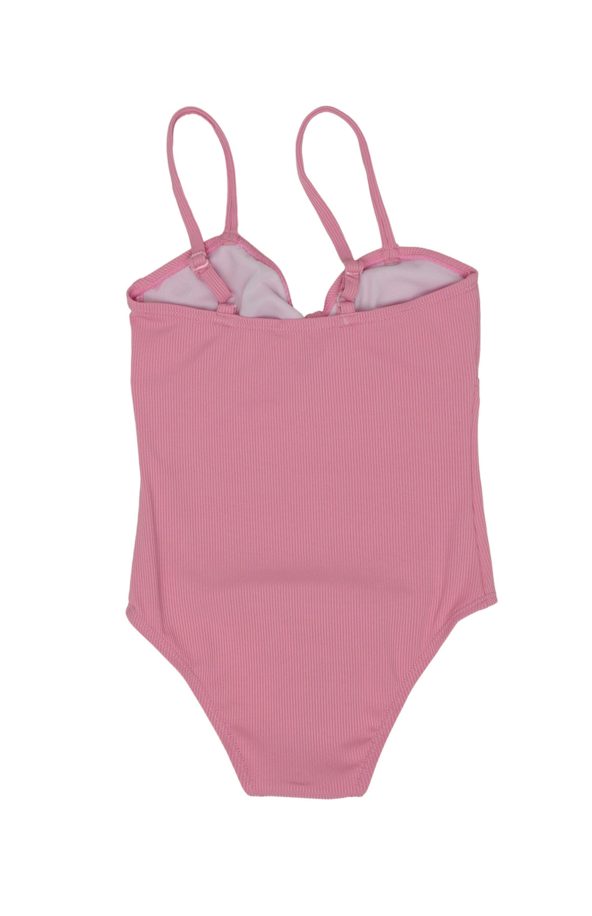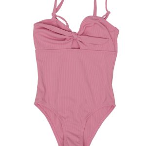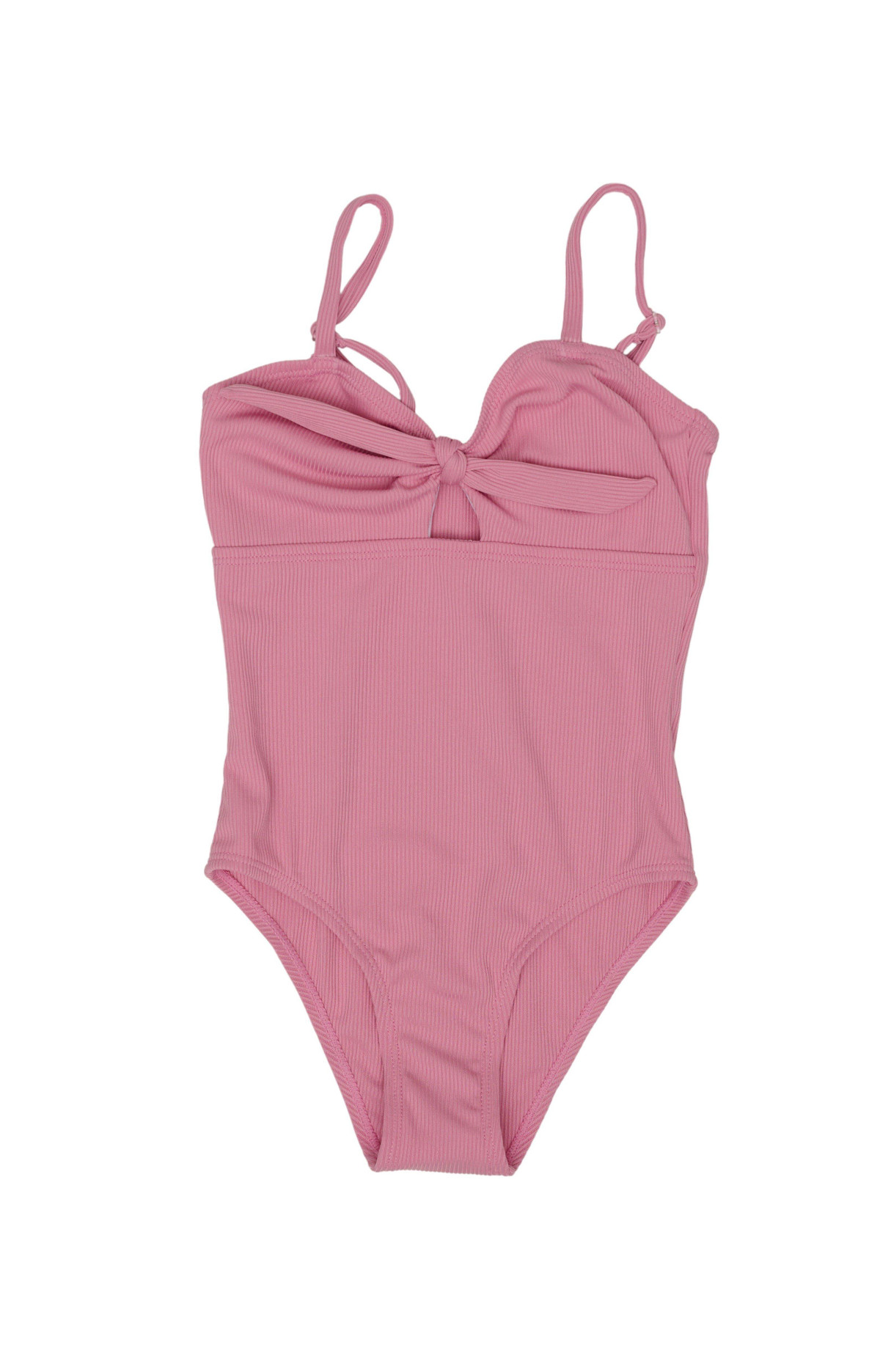 Textured Solid Spaghetti Strap One Piece Swimsuit with Decorative Bow Tie and Cutout, Adjustable Straps, and Full Body Lining