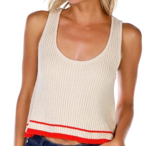 Stay cool and casual in this Billabong knit tank top featuring a soft textured feel and bold orange stripe. The relaxed fit and lightweight design make it perfect for beach days festivals or laid back weekends. Easy to pair with shorts denim or swimwear this tank brings effortless style and comfort. Fabrication is 100% cotton.