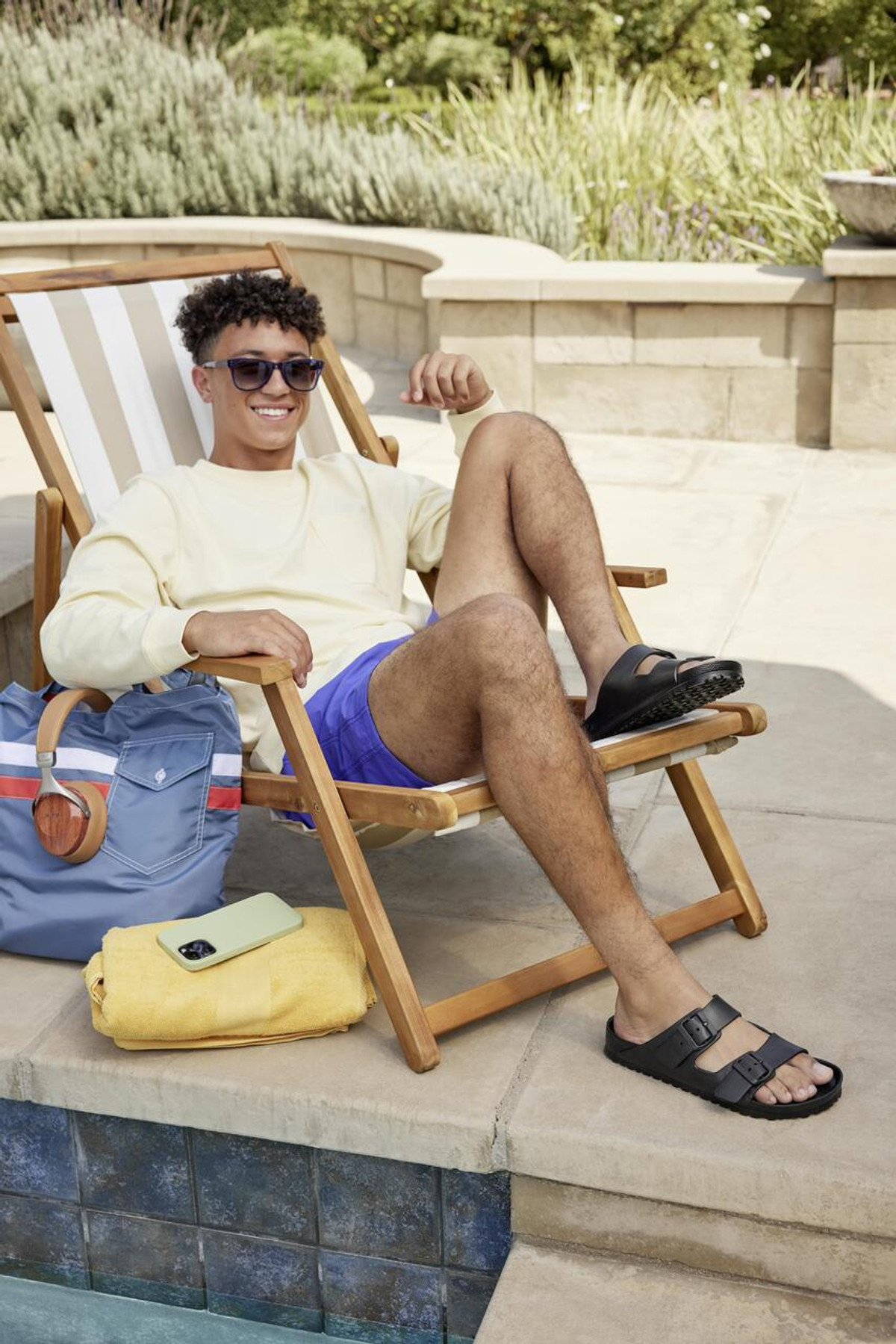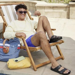 The legendary two-strap design from BIRKENSTOCK – the Arizona. Modeled on the cork original, this sandal is made from ultra lightweight and highly flexible EVA. These sandals are shock absorbing, waterproof, and skin-friendly. Wear them at the beach, in the garden, or around the gym and after workouts. It’s the perfect addition to your classic BIRKENSTOCK sandals.