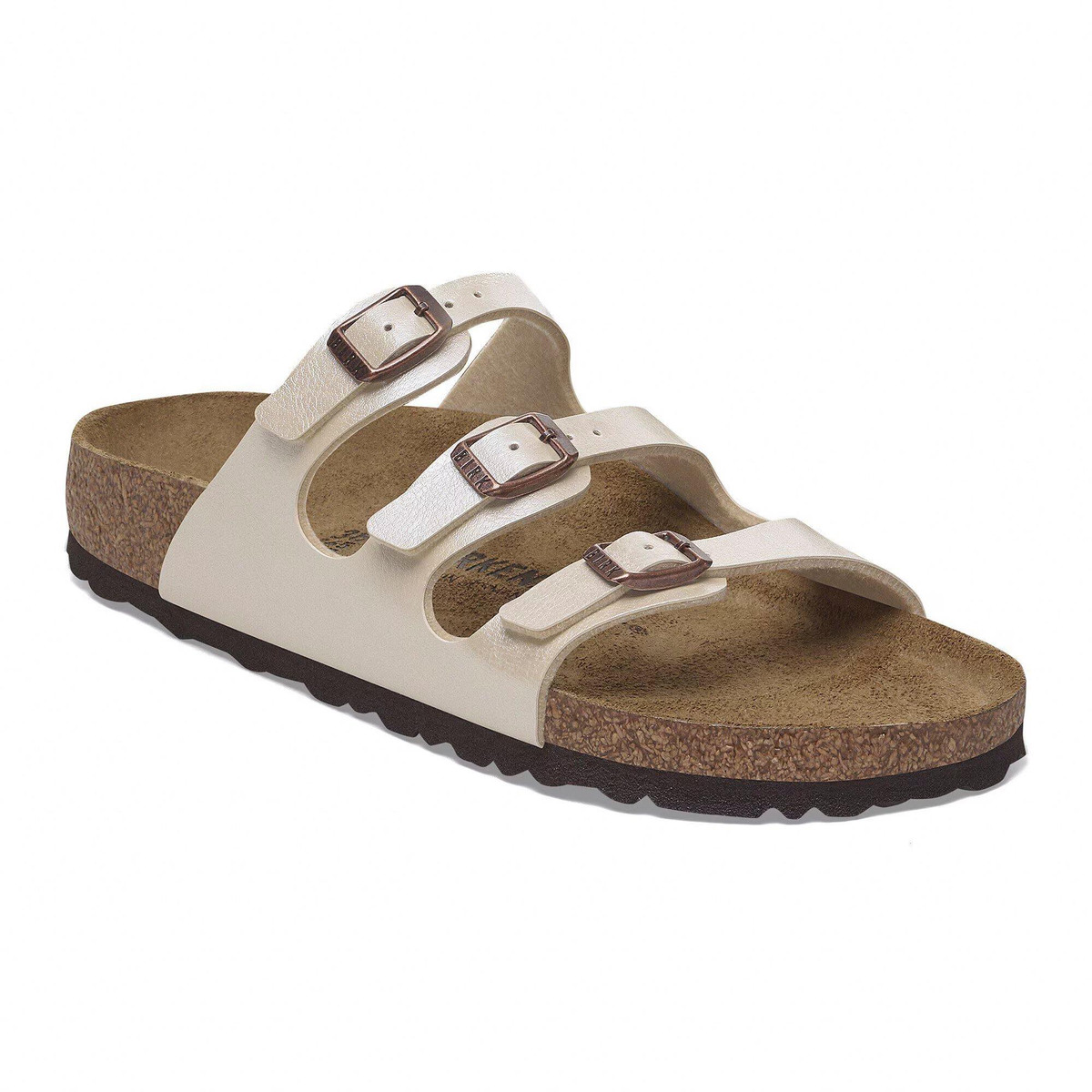 Catch the sun in the Florida Graceful women’s footbed sandal from BIRKENSTOCK. Featuring a shimmery, embossed faux leather upper that reflects light, this three-strapped sandal puts your feet on display. The cork-latex footbed cradles, while the flexible sole supports each step.