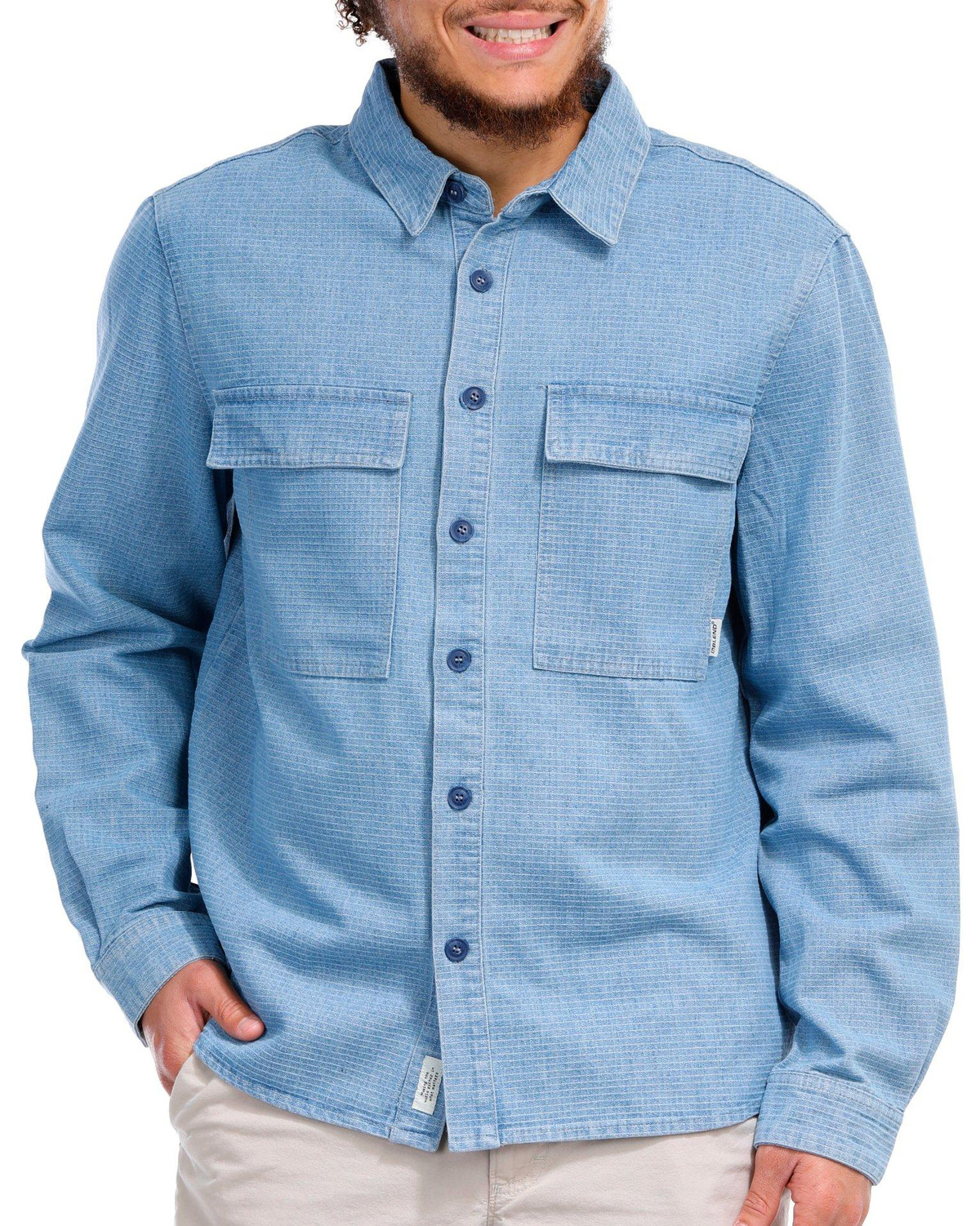 The Men’s Denim Shacket, crafted from a blend of cotton and polyester, offers a stylish and durable fit. Featuring a unique grid texture, this shacket is designed with long sleeves, practical chest pockets, and a classic collared neckline. Perfect for layering in cooler weather, this versatile piece adds a touch of modern flair to any wardrobe.