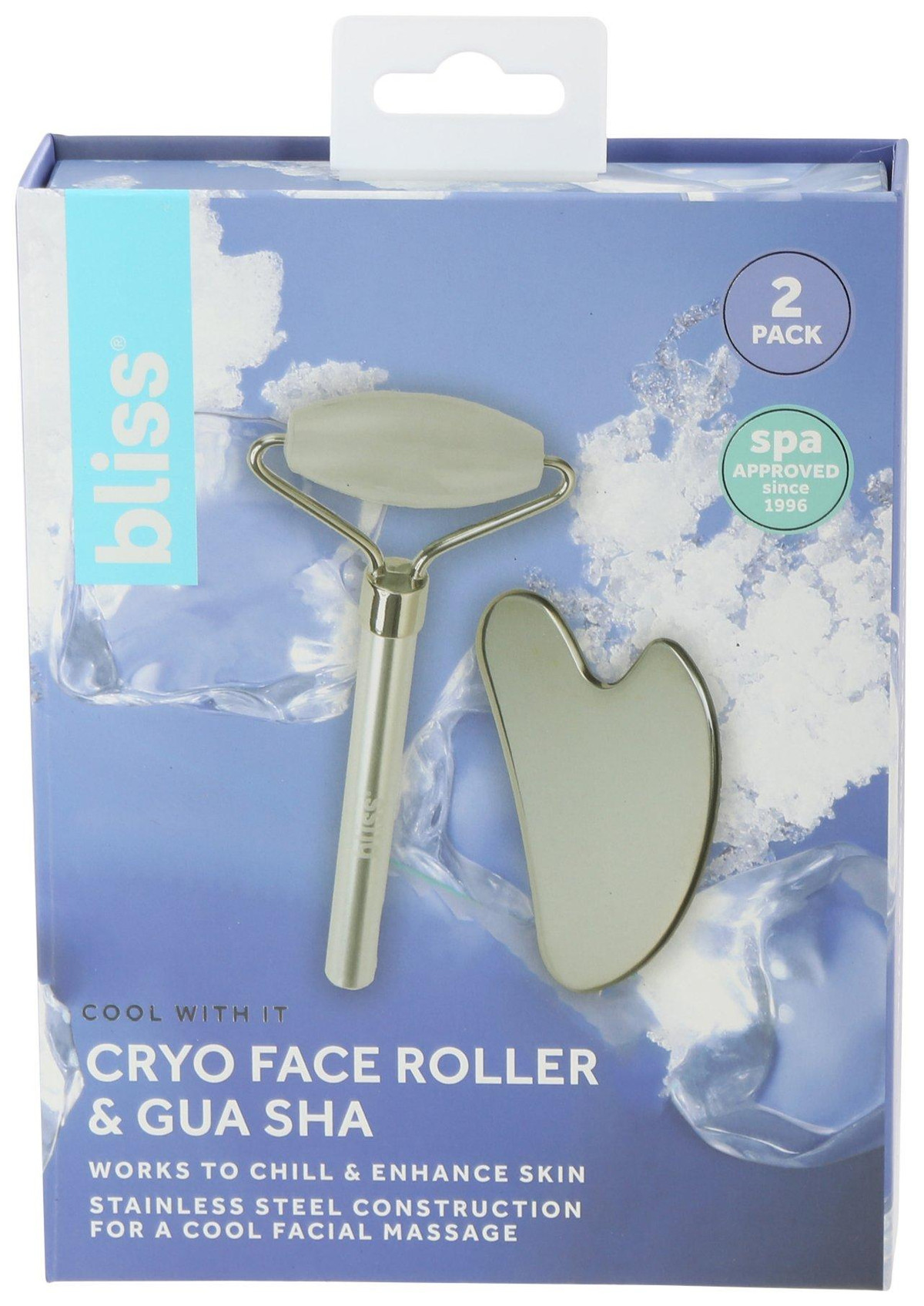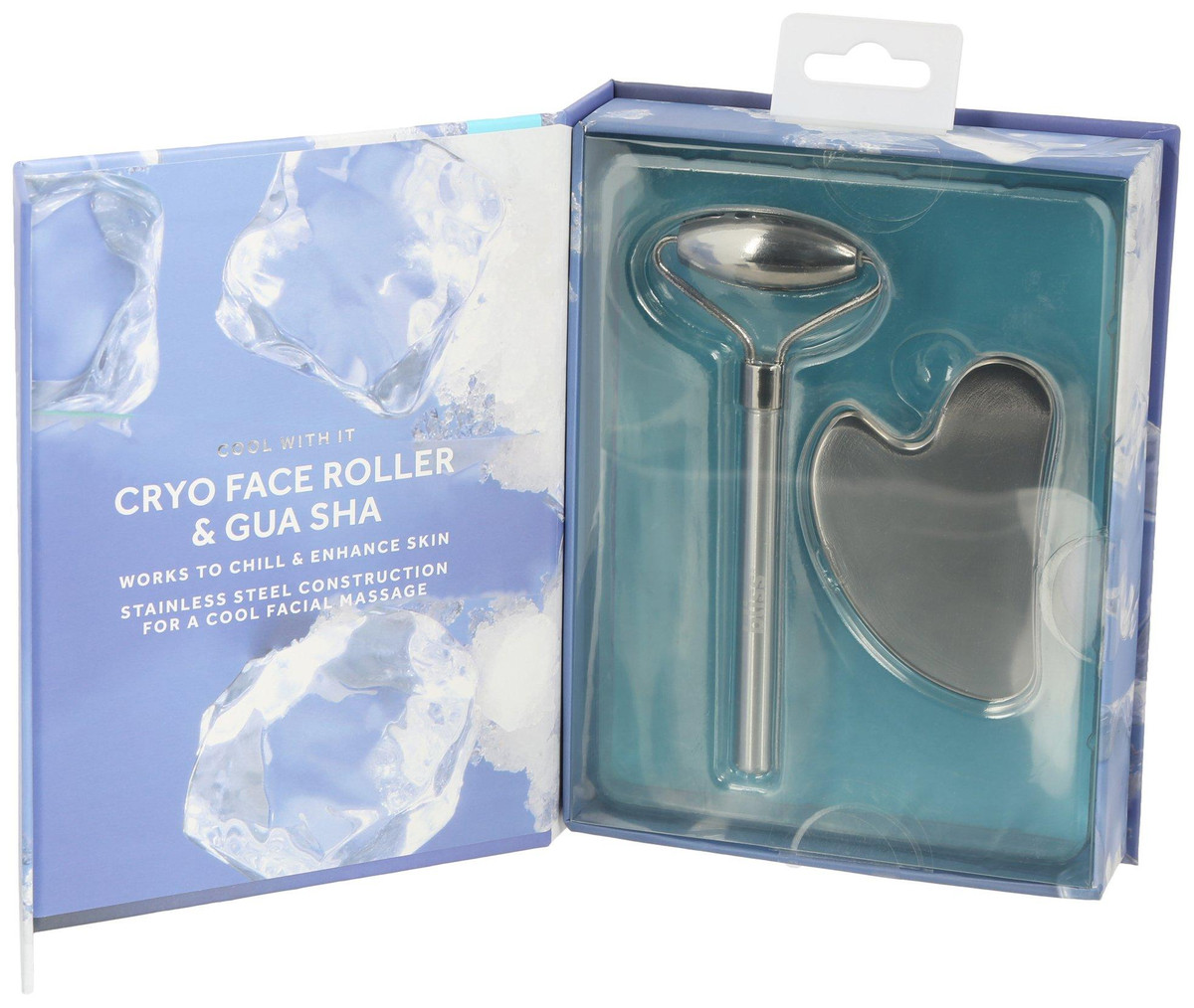 Cool off and firm up wiht this set that includes a spa-grade facial roller and sleek gua sha tool. Each made from high-quality stainless steel, the easy-to-use face roller helps promote a lifted look, while the gua sha helps to firm your facial contour. Use in tandem with your go-to daily serums.