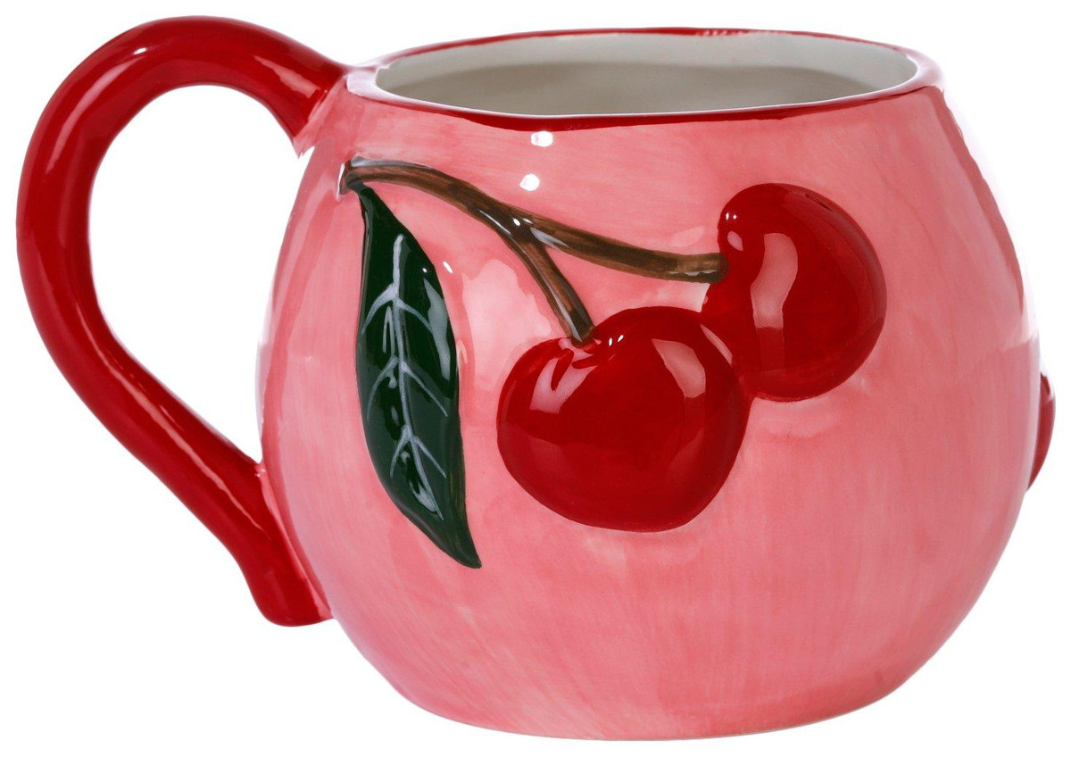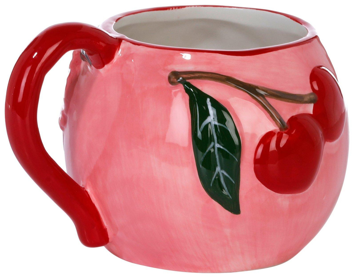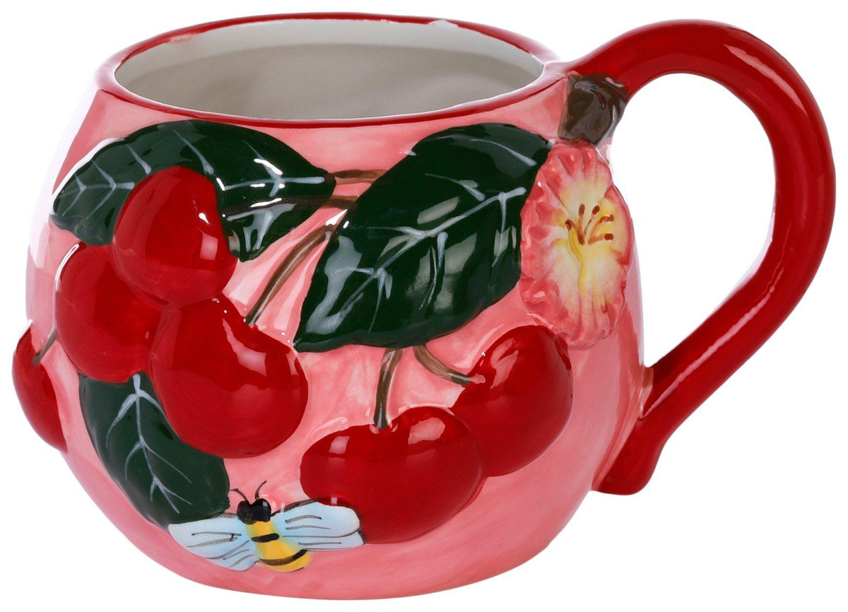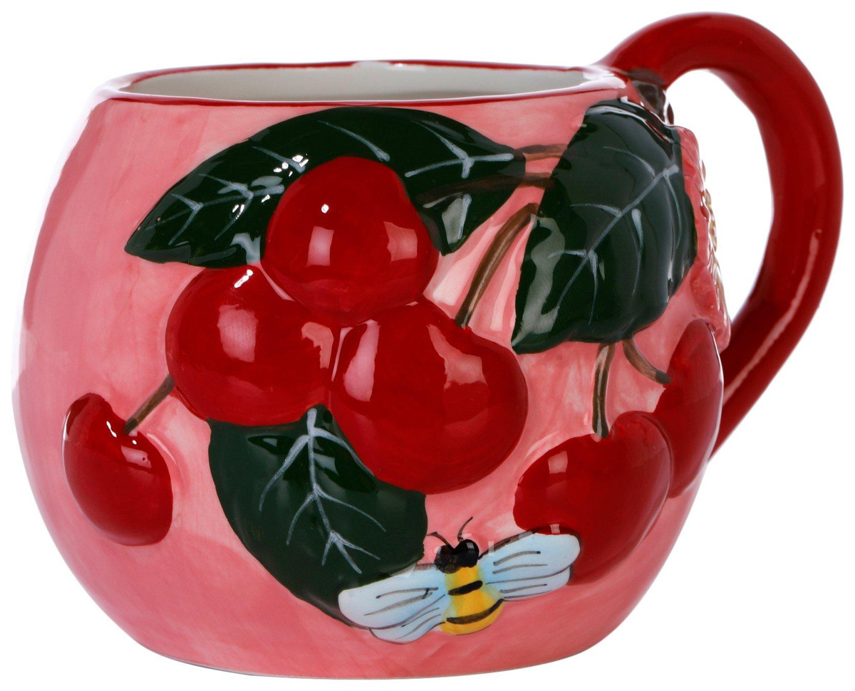 Brighten up your morning with this Cherry Coffee Cup, featuring a cheerful design of cherry bunches with leaves and a little bumblebee. Nature inspired charm meets everyday function in this high quality ceramic piece, crafted for durability and easy handling. Perfect for tea or coffee, it adds a sunny, uplifting touch to kitchens, breakfast nooks or cozy afternoon breaks. Measures approximately 4 in x 4.5 in round.