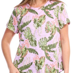 Embrace the essence of summer with the Baja Tropical Short Sleeve Luxey Tee. Featuring a flattering scoop neckline and a vibrant tropical print, this tee is perfect for warm weather and sunny days. Made from soft, breathable fabric, it ensures all-day comfort and ease. Whether you’re heading to the beach or a casual outing, this tee adds a touch of tropical flair to your wardrobe. Top length measures approximately 25 in. Fabrication is 60% cotton and 40% modal.