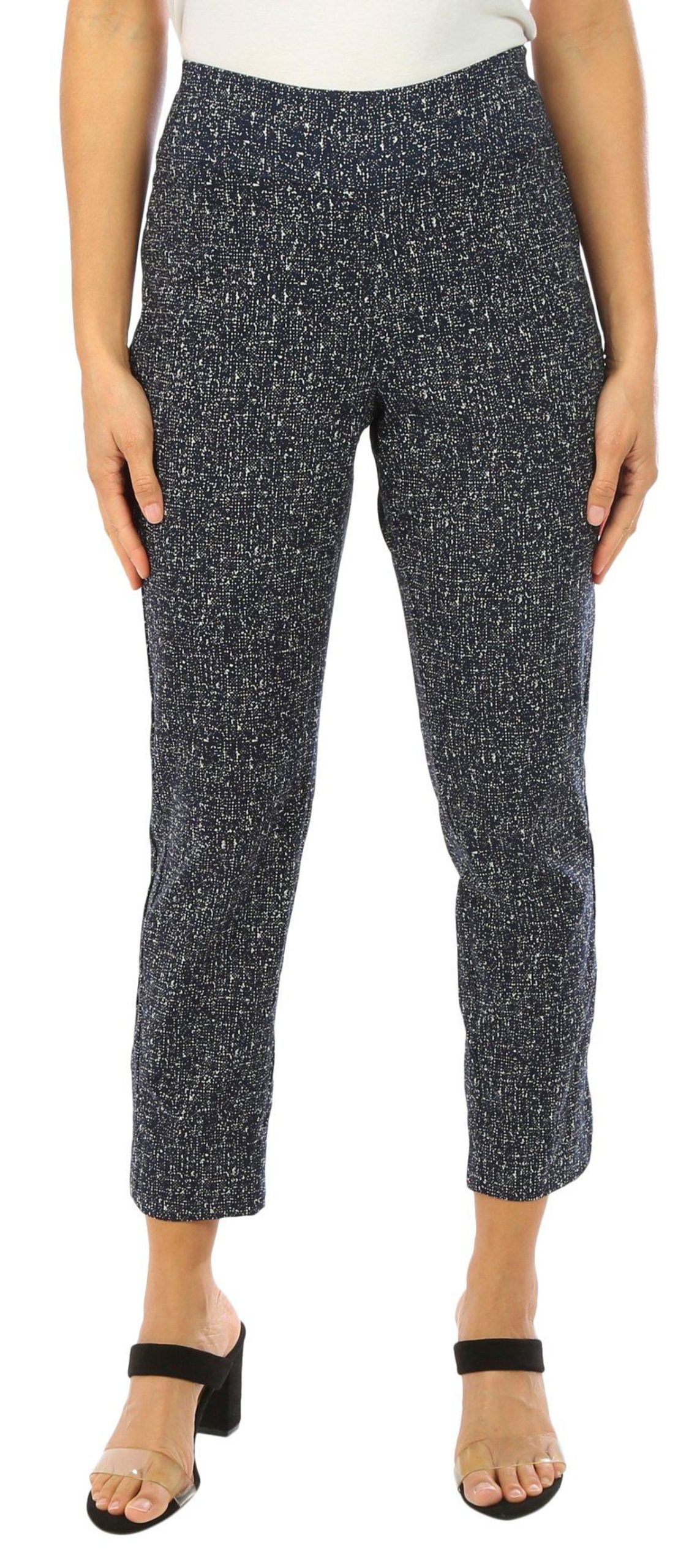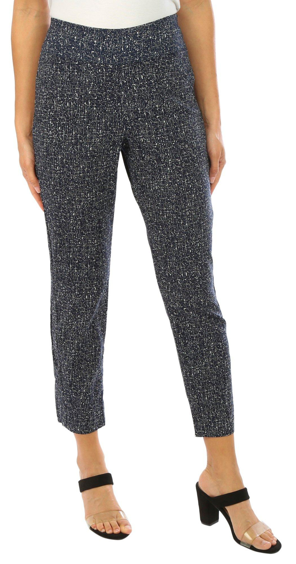 Upgrade your wardrobe with our Womens 27 in Pull-On Stretch Pants. Featuring a chic black and white design, these pants offer a stylish look thats perfect for any occasion. The pull-on waistband ensures ease and comfort, while the blend of rayon, nylon, and spandex provides a soft, stretchy fit. Whether youre dressing up for a night out or keeping it casual, these pants deliver both style and comfort. Elevate your everyday wear with this versatile addition!