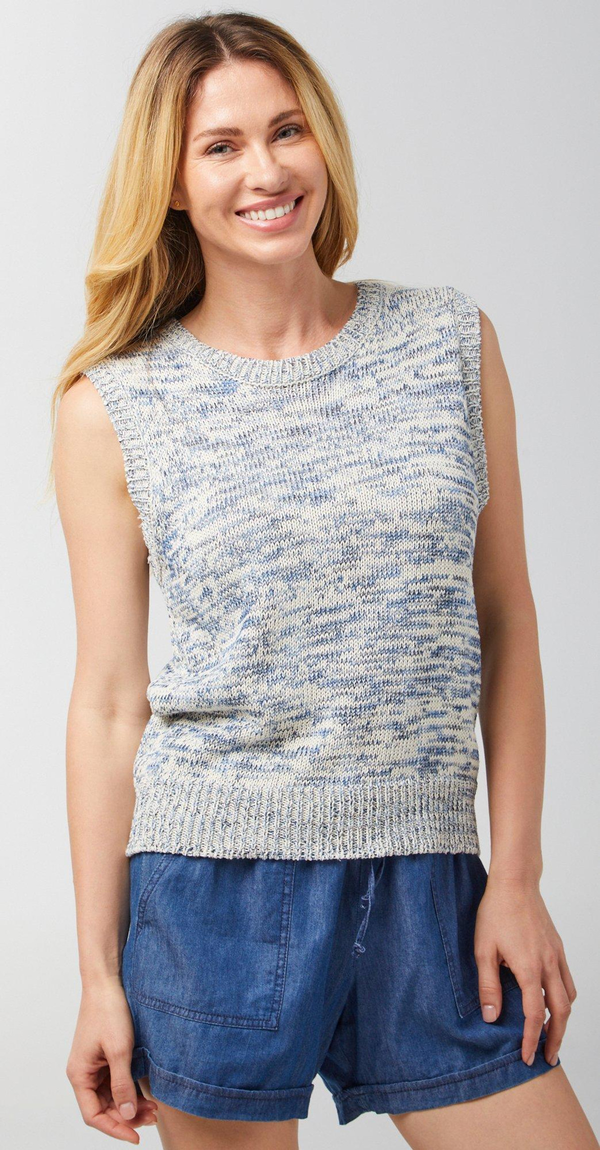 Introducing our Women’s Space Dye Sweater Vest, crafted from a blend of cotton, polyester, and nylon. This stylish vest features a unique space dye pattern and a 24-inch length, making it a perfect layering piece for any season. With its modern design and comfortable fit, this sweater vest adds a touch of sophistication to your wardrobe, ideal for both casual and dressy occasions. Fabrication is 54% Cotton, 28% polyester, 18% Nylon.