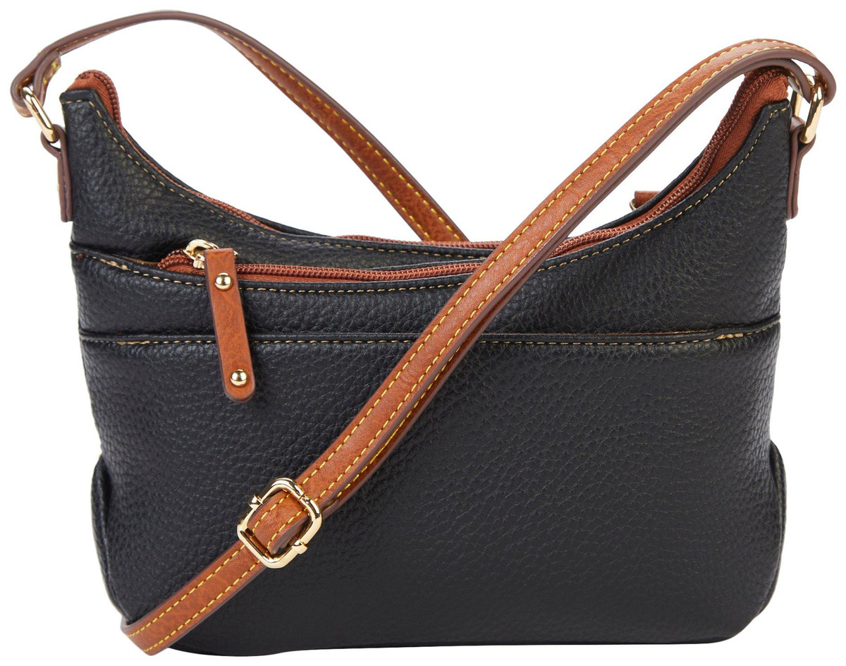Introducing the Oakfield Mini Crossbody Bag, a perfect blend of style and functionality. This elegant bag features a solid faux leather exterior, giving it a sleek and sophisticated look. The adjustable crossbody strap ensures a comfortable fit, while the organizer-styled interior offers multiple card slots, bill folds, and an ID window for easy access to your essentials.