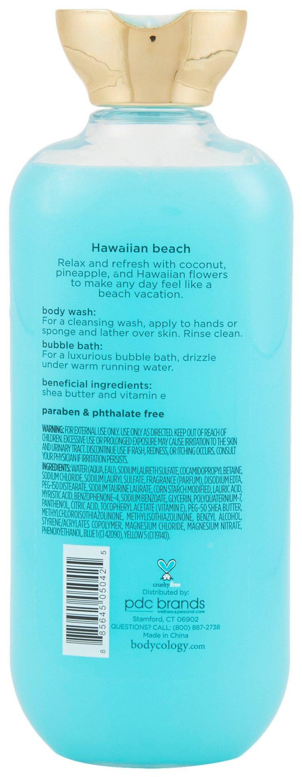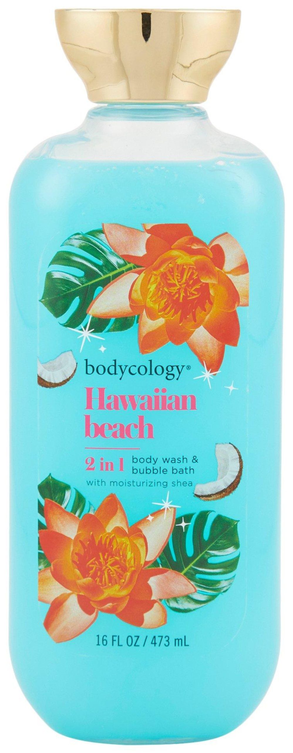 Experience a beach getaway with Hawaiian Beach 2-in-1 body wash and bubble bath, enriched with shea butter and vitamin E.
