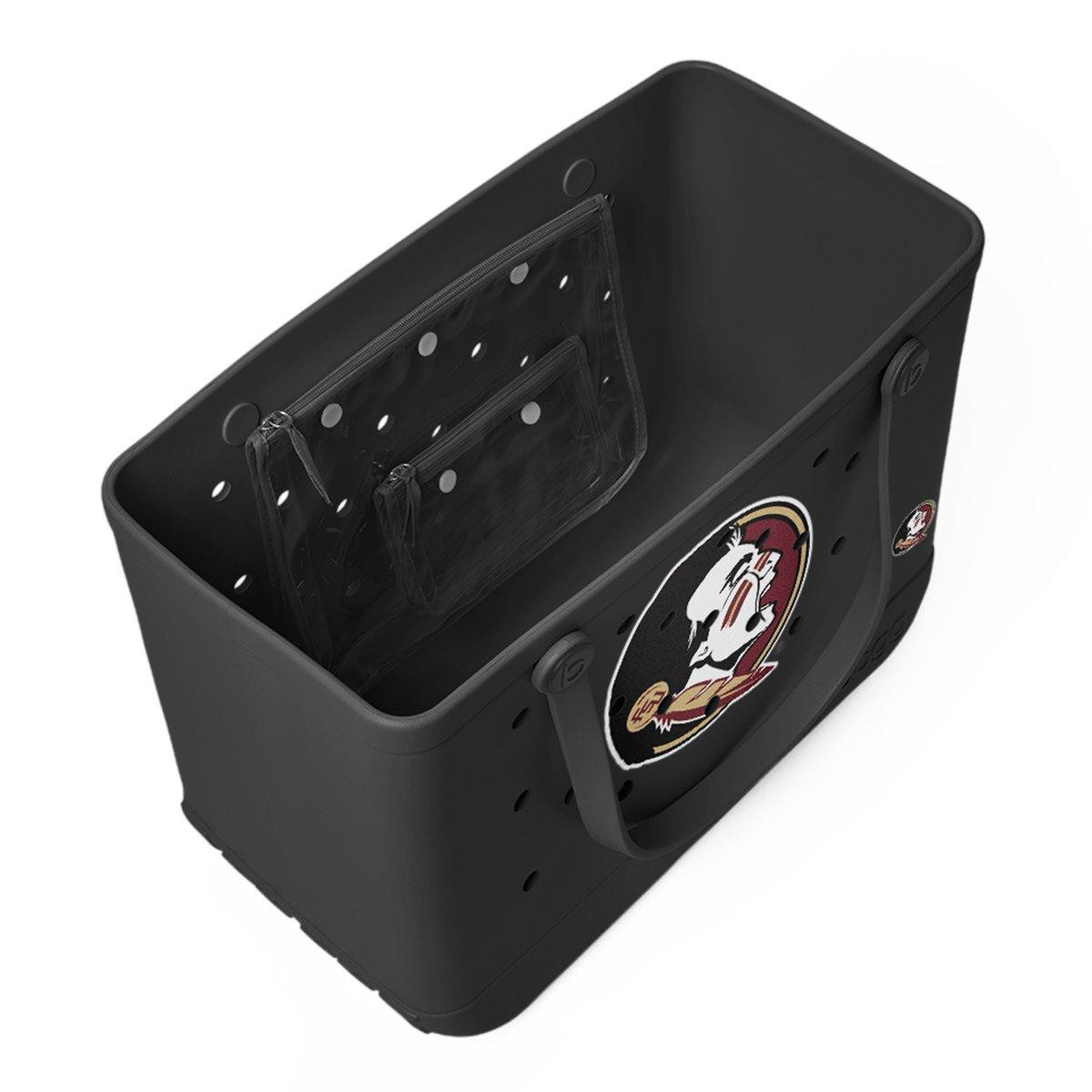 Prove your fan loyalty with help from the Bogg Bag Florida State University Original Bag. The lightweight, flexible EVA construction offers water-resistant protection, and the 2 clear insert bags make it easy to organize your essentials. The 2 EVA handles provide simple carrying, and the team design shows off your fan spirit. 40-pound weight capacity. Measures: 9.5 in. W x 15 in. H x 13.5 in. D.