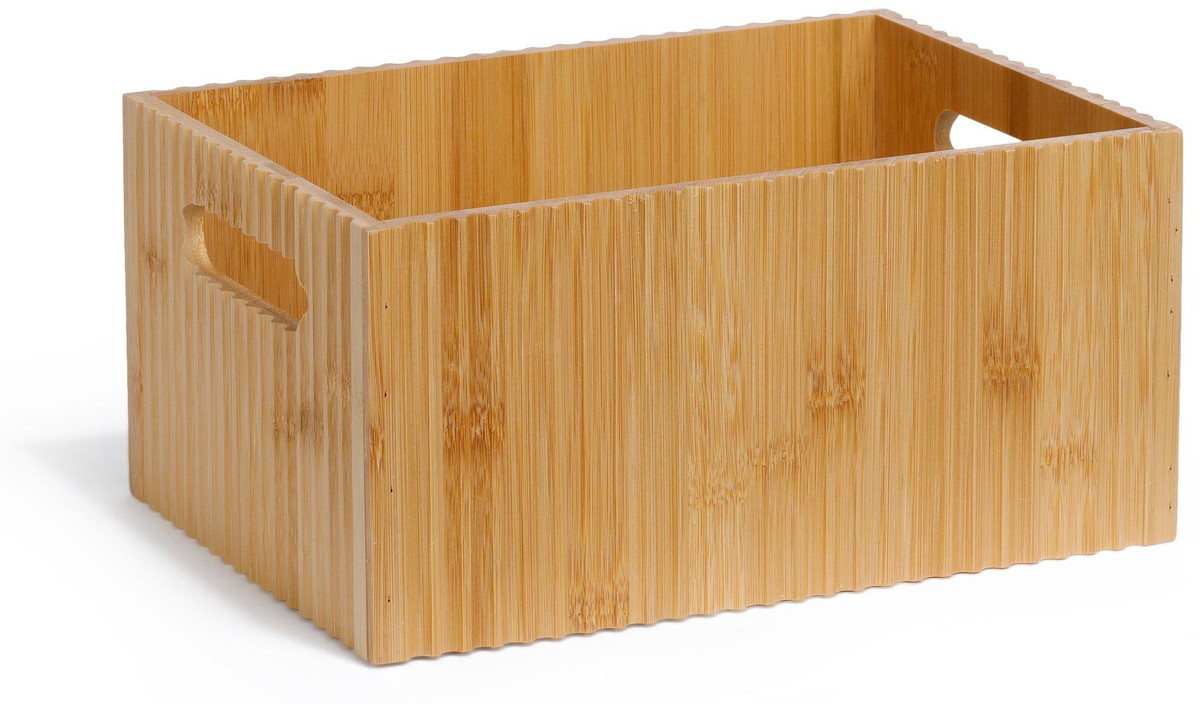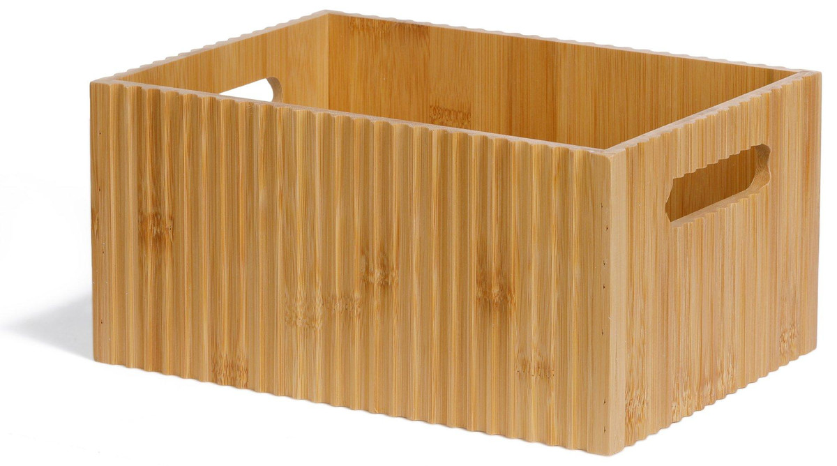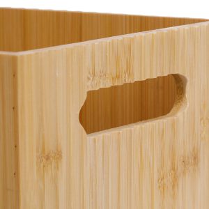 This practical bamboo storage bin with natural accents is a perfect combination of traditional craftsmanship and rustic charm. This piece is made from strong all natural bamboo material, making it a versatile addition to your living space. Perfect for storing remote controls in the living room, small toys in a child’s room, or papers in the office, this bin is a versatile solution to keep your space tidy and organized. Measures 10.5 in. x 7.5 in x 5 in.