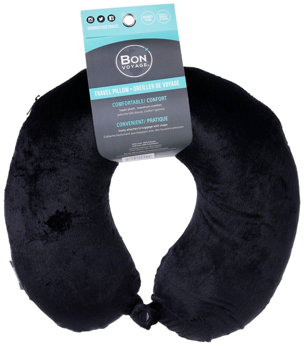 Add comfort to your carry on with the Bon Voyage Travel Pillow. Featuring ultra plush memory foam, this multi functional pillow is perfect for travel and sleep. Easily attaches to luggage with snaps for on the go relaxation.