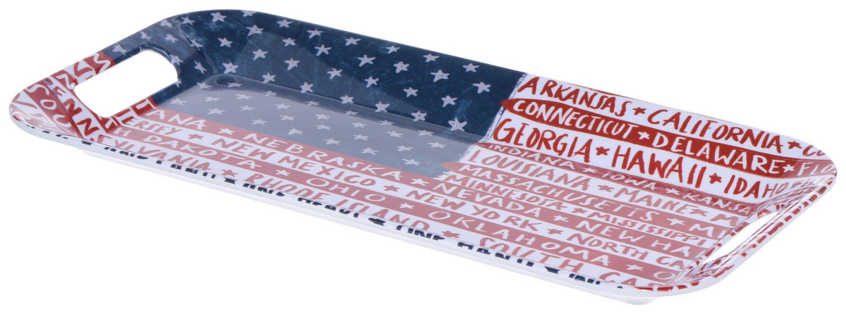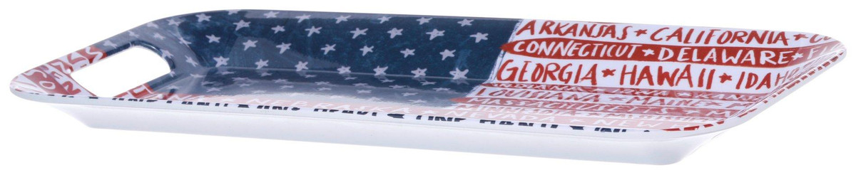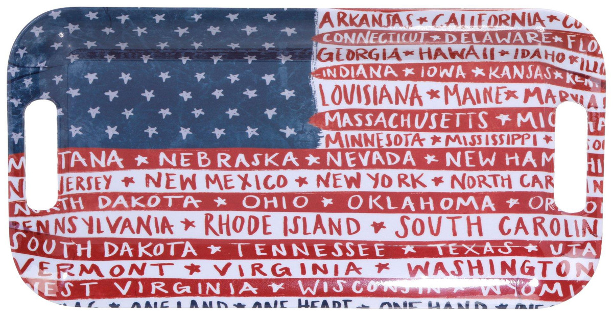 Additional Info: Patriotic and Americana vibe – celebrates the unity and diversity of America through a beautiful and functional melamine tray. Proudly display your love for the country with an item that features the names of all 50 states, blending style with sentiment. Ideal for gatherings, kitchen decor, or as a memorable gift. Measures: 15” x 8”