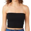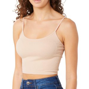Introducing this Crossback Cropped Cami, a must-have for your wardrobe essentials. This cami features a flattering round neckline and crossback design, providing a comfortable and stylish fit. The lightly ribbed design ensures a chic silhouette, while the solid color makes it versatile for any outfit. Fabrication 94% nylon, 6% spandex.