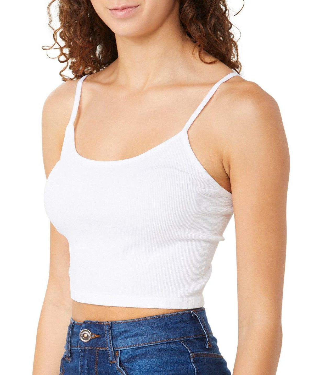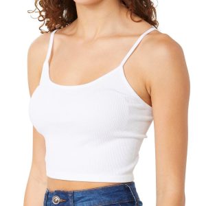 Introducing this Crossback Cropped Cami, a must-have for your wardrobe essentials. This cami features a flattering round neckline and crossback design, providing a comfortable and stylish fit. The lightly ribbed design ensures a chic silhouette, while the solid color makes it versatile for any outfit. Fabrication 94% nylon, 6% spandex.