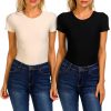 Mix and match with this stylish solid-color long sleeve top to create your new favorite outfits! It features ribbed fabric, a round neckline, and a soft and comfortable fit. Top length measures approximately 16 in.
