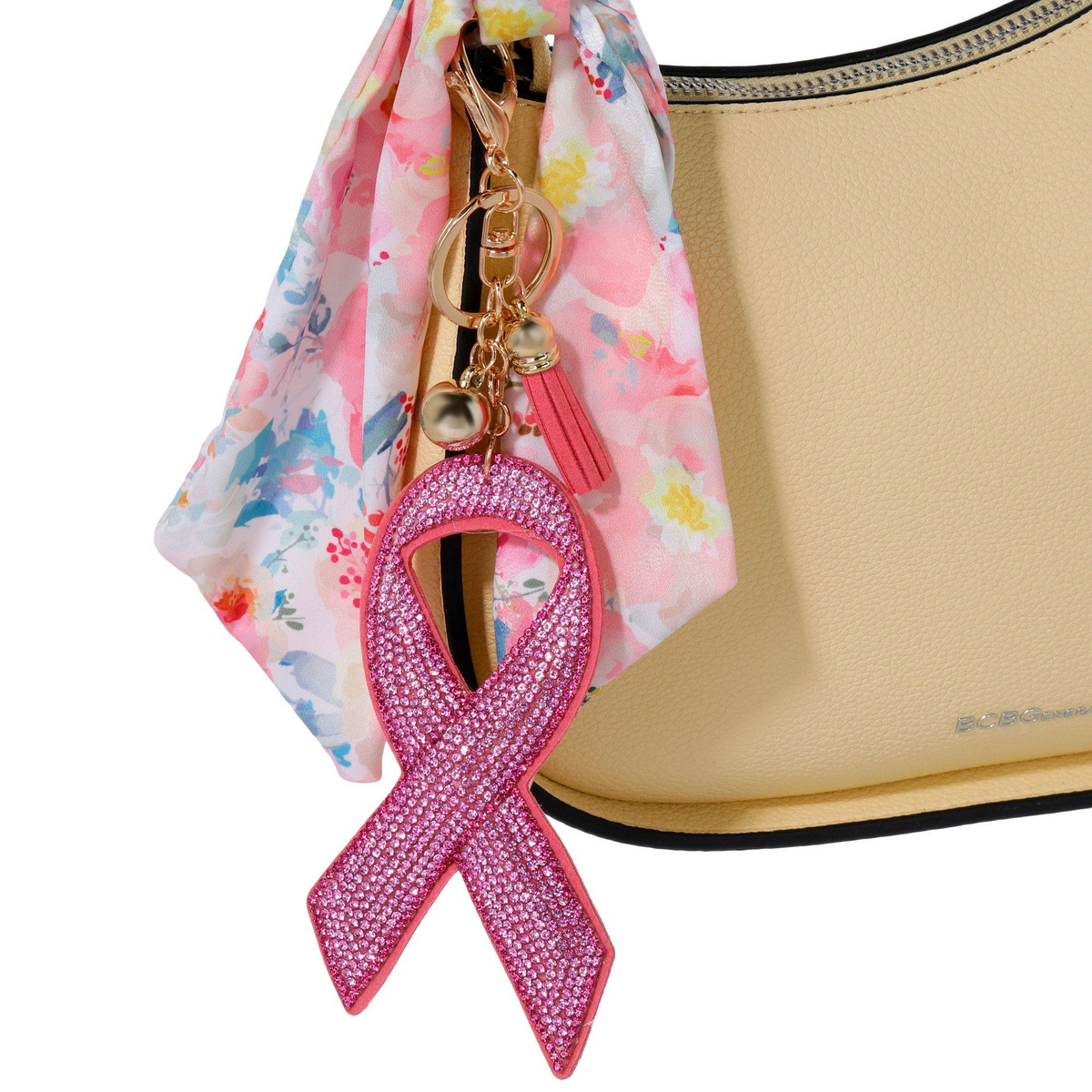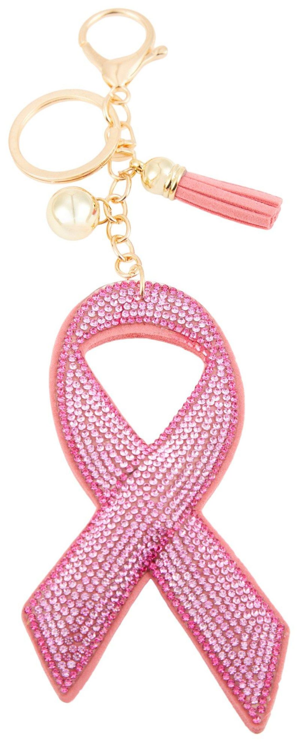 Show your support in style with this 5-inch Breast Cancer Ribbon Bag Charm. Featuring a radiant rhinestone exterior and a gold-tone lobster claw closure, it is a meaningful and elegant accessory for any bag or keychain.