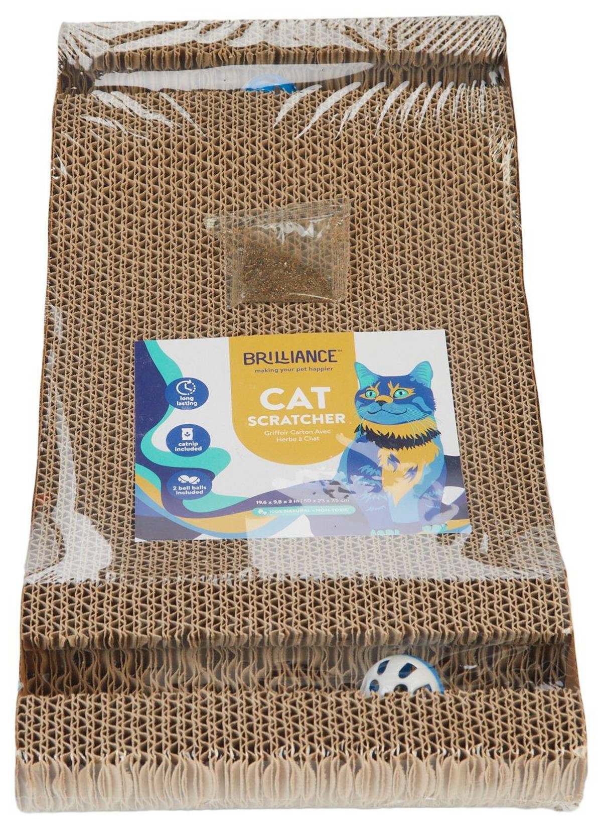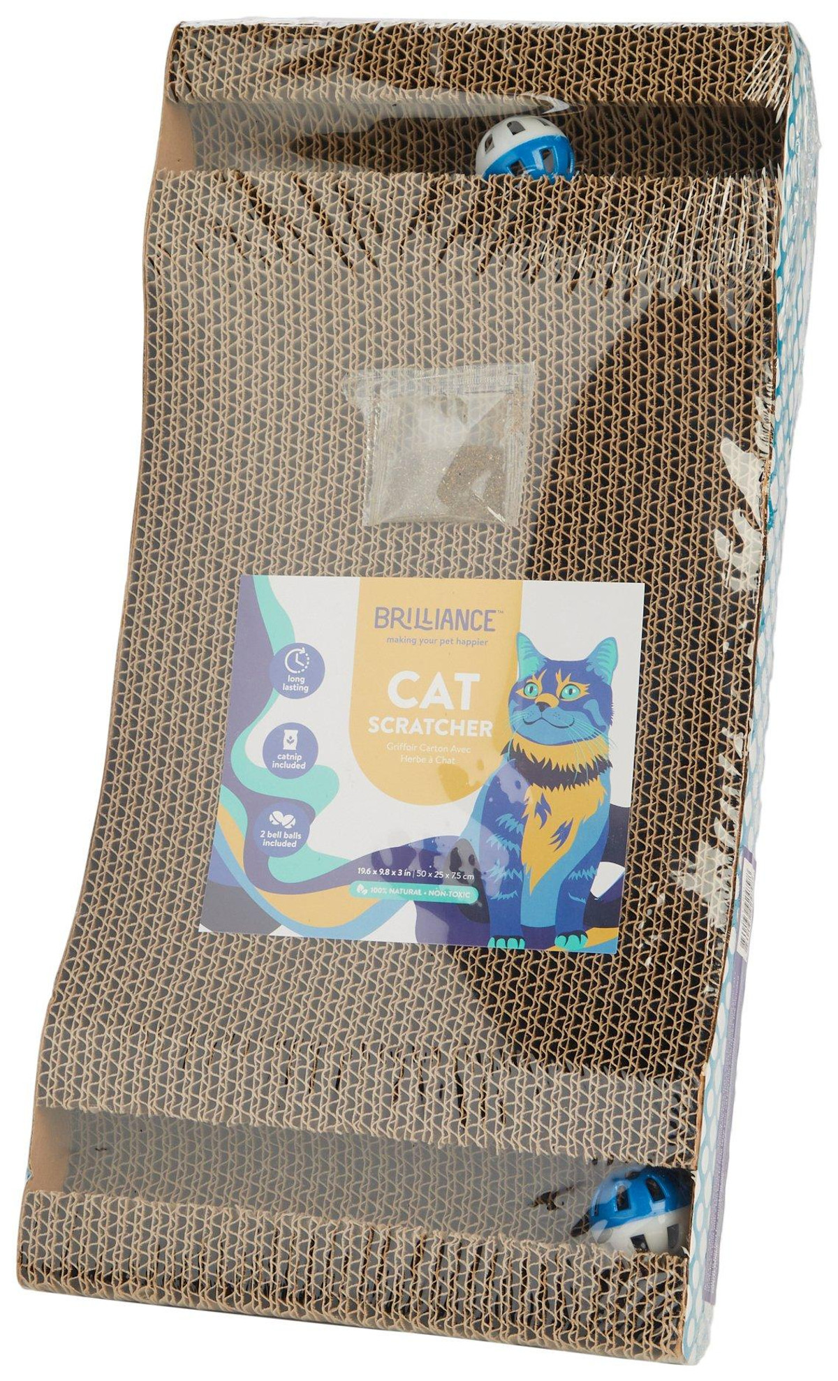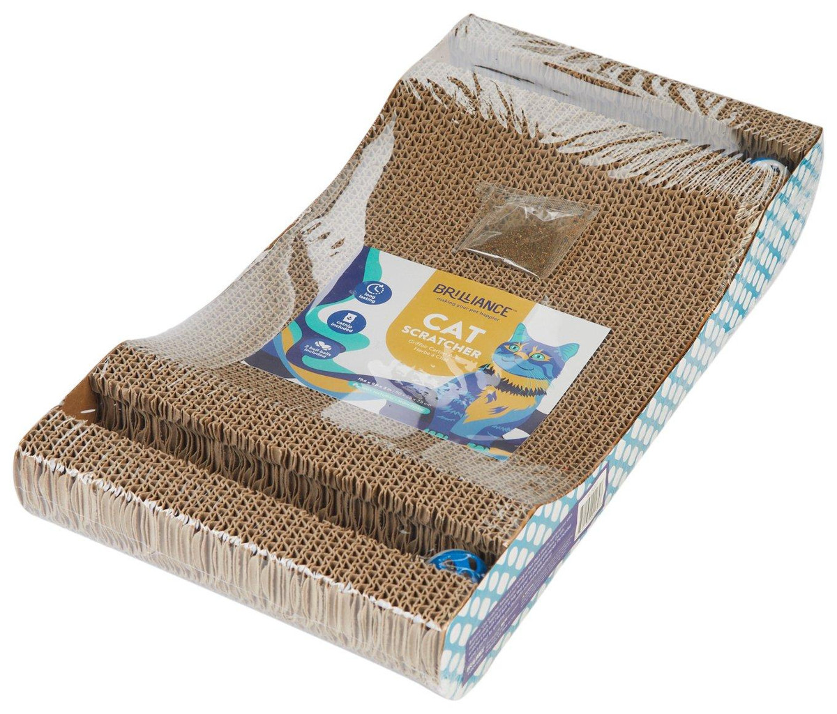 Keep your feline entertained and your furniture safe with this eco-friendly, wavy scratcher. Made from durable corrugated cardboard, it offers multiple scratching angles, a cozy lounging spot, and fun extras like embedded bell balls and catnip. Measures 20 x 10 x 3 inches perfect for playful paws and peaceful naps.