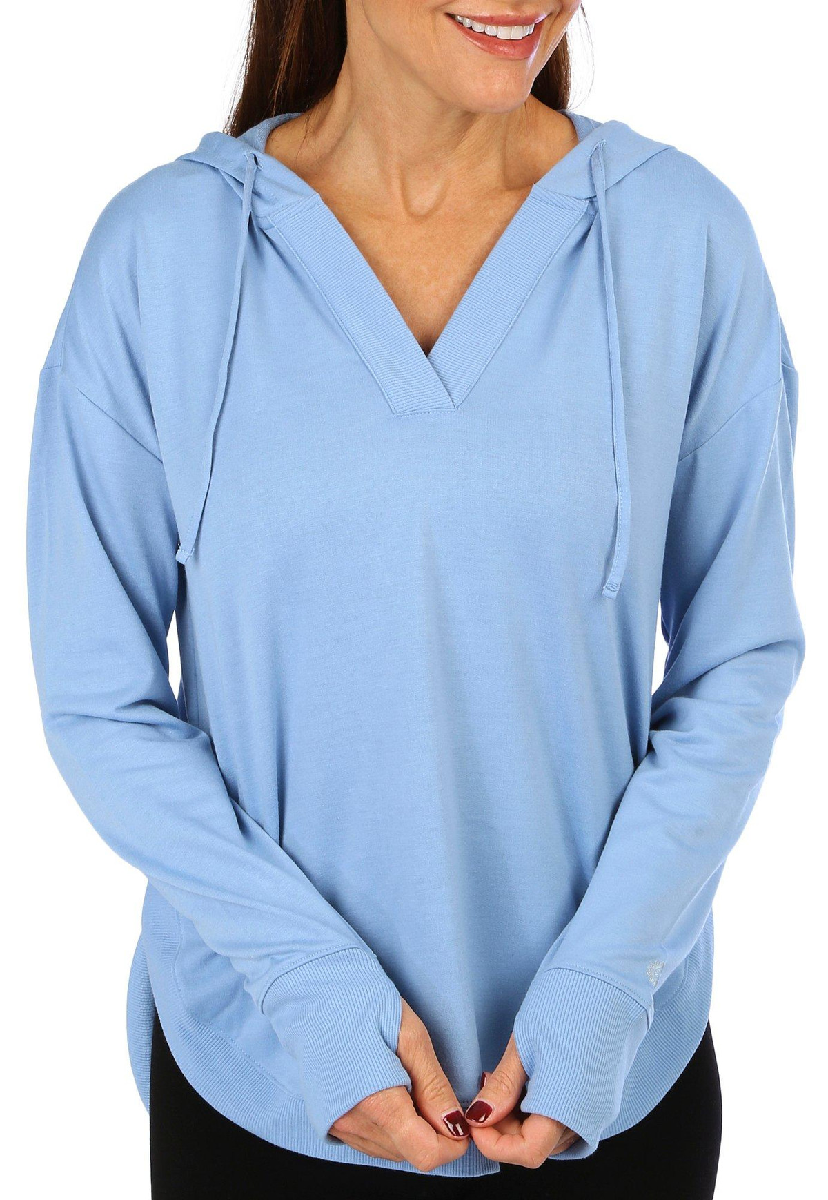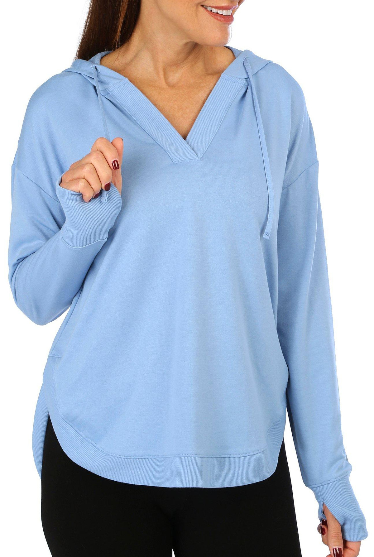 The Scoop Hemline Hoodie Top is crafted from a soft, active material that provides both comfort and flexibility. Featuring a flattering scoop hemline and a relaxed fit, its perfect for workouts or casual wear. The lightweight fabric ensures breathability, making it an ideal choice for active days.