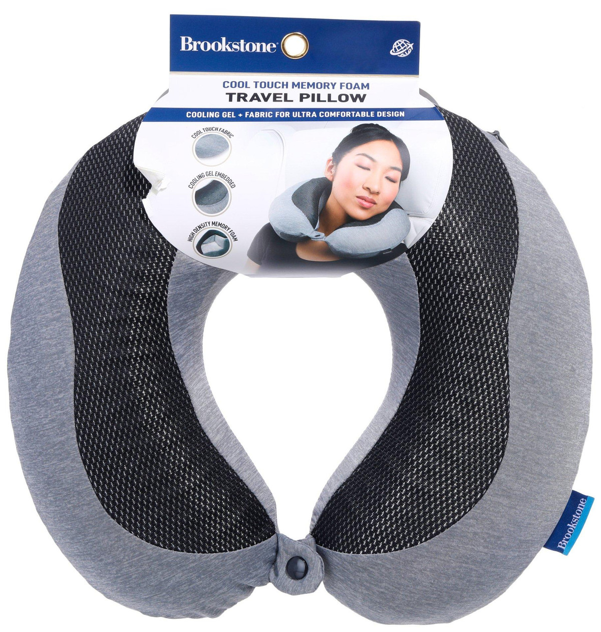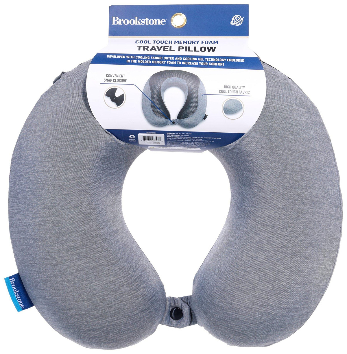 Journey into comfort with this Cool Touch Memory Foam Travel Pillow. Made from durable materials, it provides the perfect combination of support and comfort. The memory foam pillow contours to your neck, ensuring restful sleep on the go. Featuring cool touch fabric, a cooling gel insert, classic U-shap with a snap closure at the neck and a machine washable cover. Fabrication is 45% Nylon, 45% Polyester, 10% Spandex. Measures approximately 12.6 in x 11.8 in x 3.74 in.