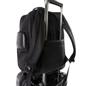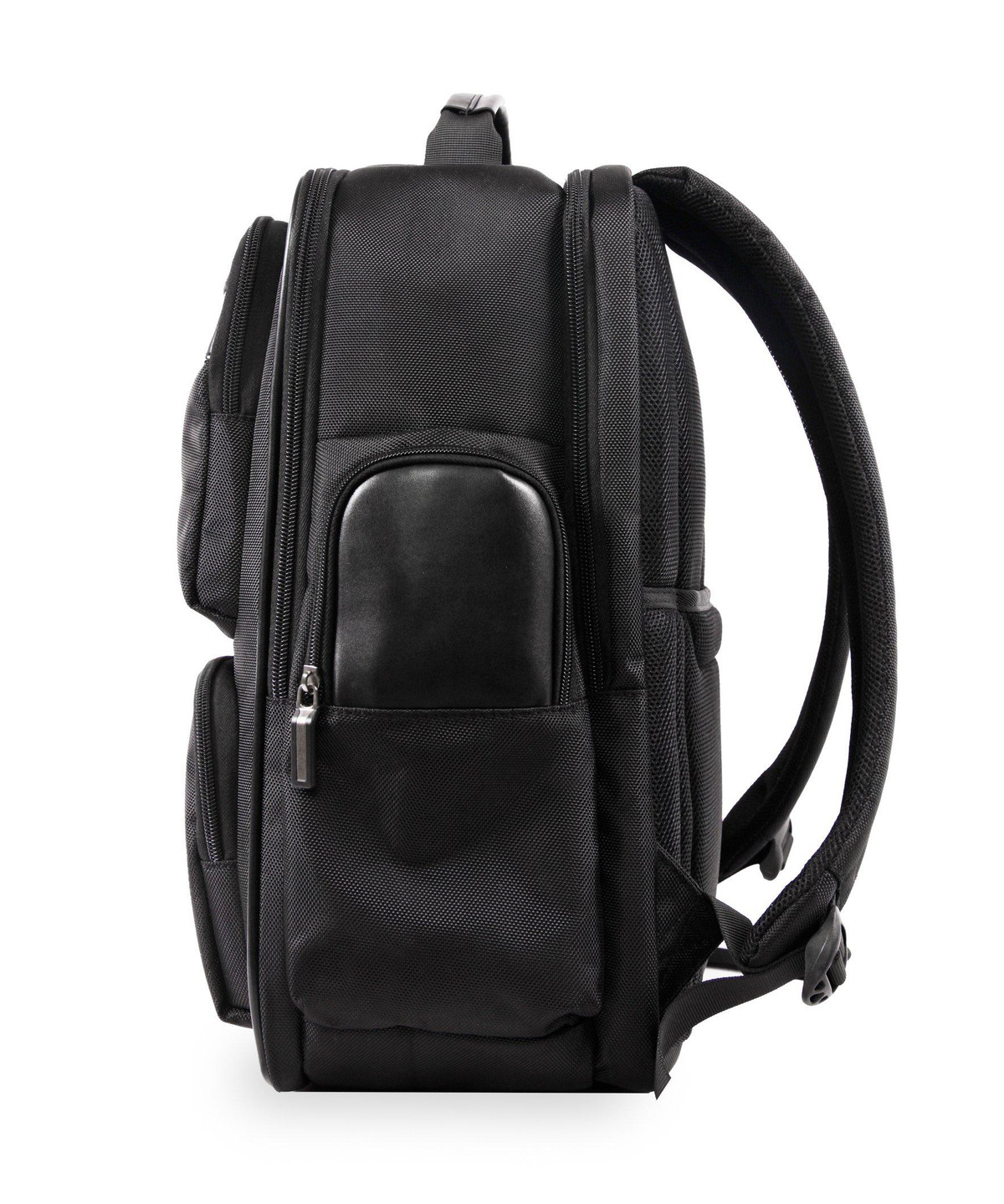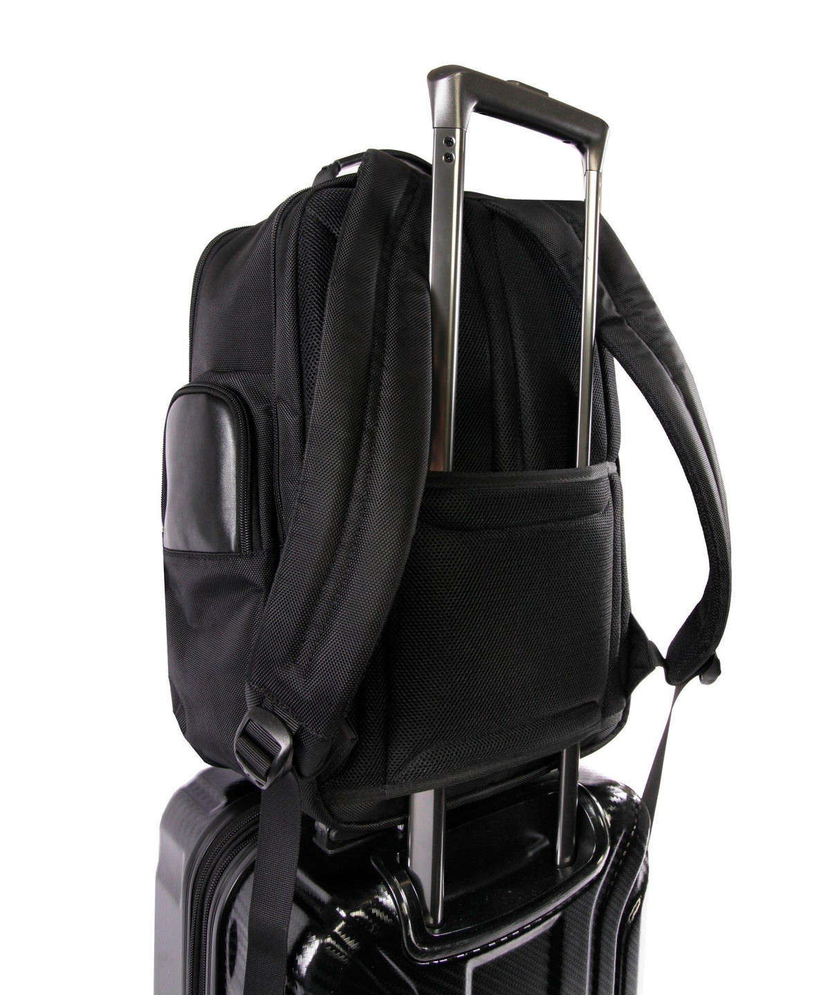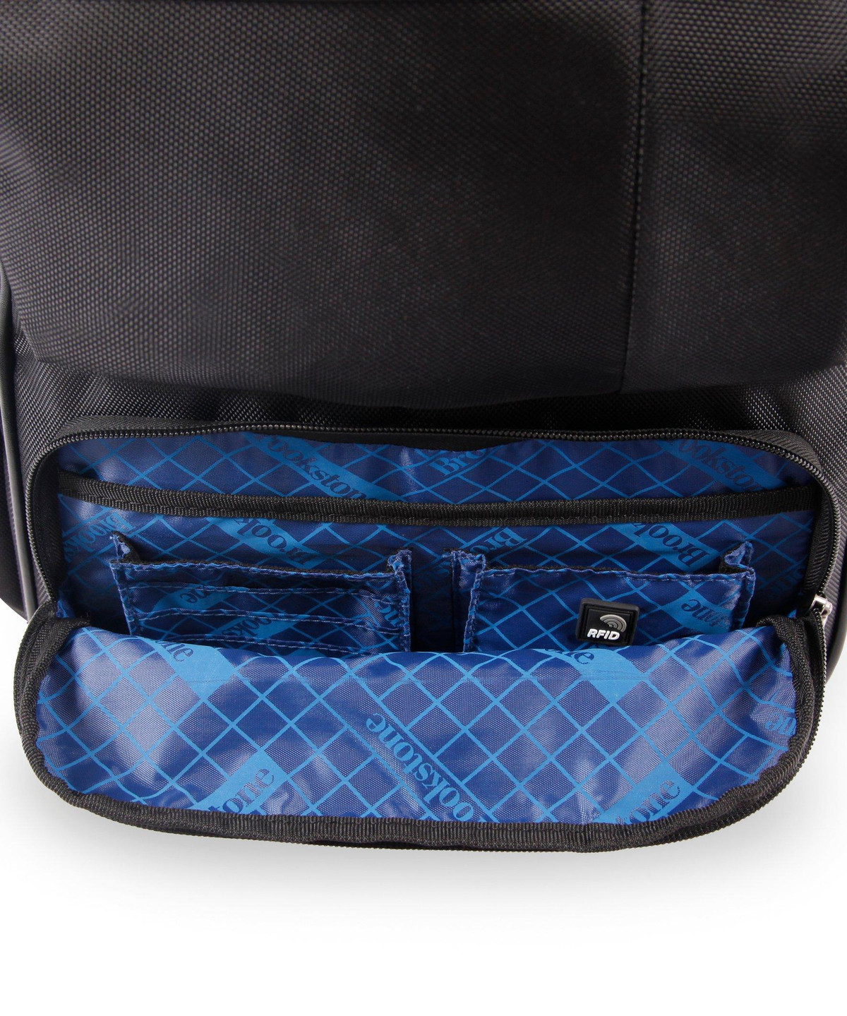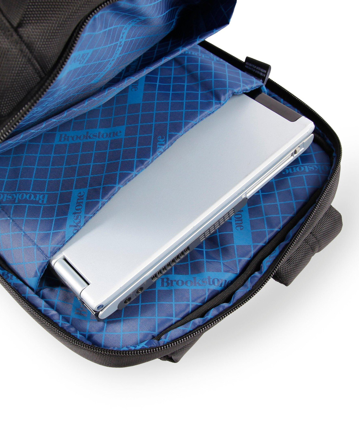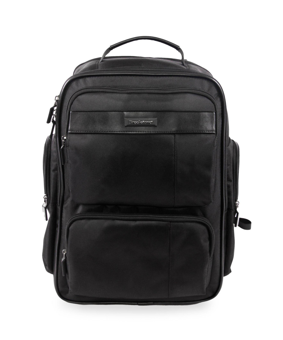 Head off to work or school with your laptop and other must-haves packed safely and stylishly inside this durable Ezra backpack by Brookstone. The backpack features a laptop/tablet compartment, RFID pocket and a luggage trolley back sleeve for easy transportation. Measures 17.5 in. x 12 in. x 8 in.