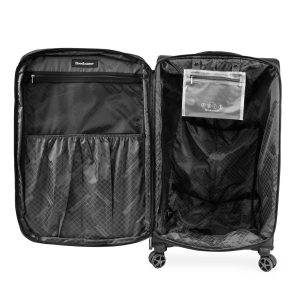 Travel in style with the Harbor check-in luggage by Brookstone. Loaded with features such as TSA lock, removable toiletry kit and is expandable for more packing space; perfect for the travelers who want a little more from their suitcase. Measures 29 in. x 19 in. x 12 in.