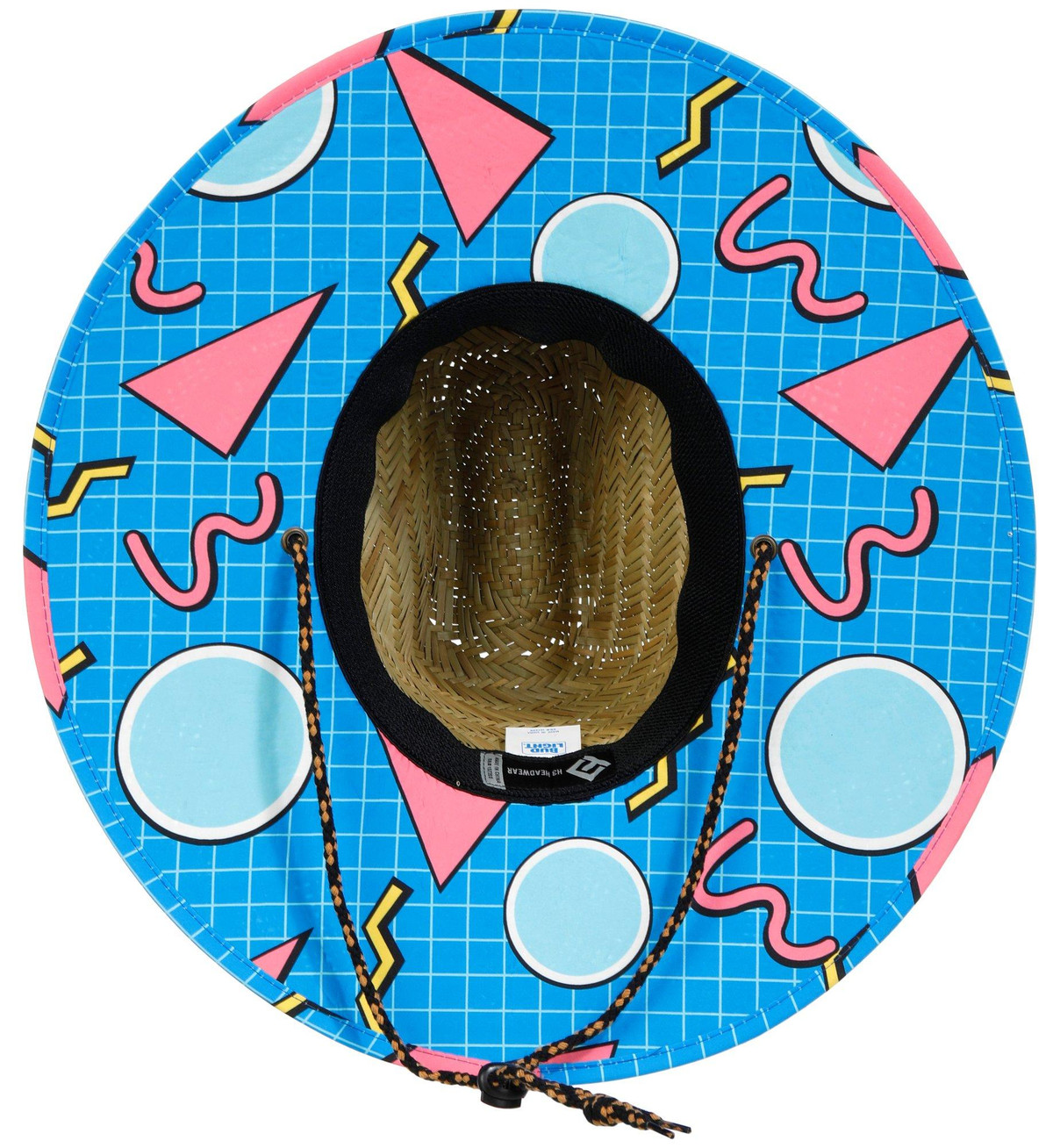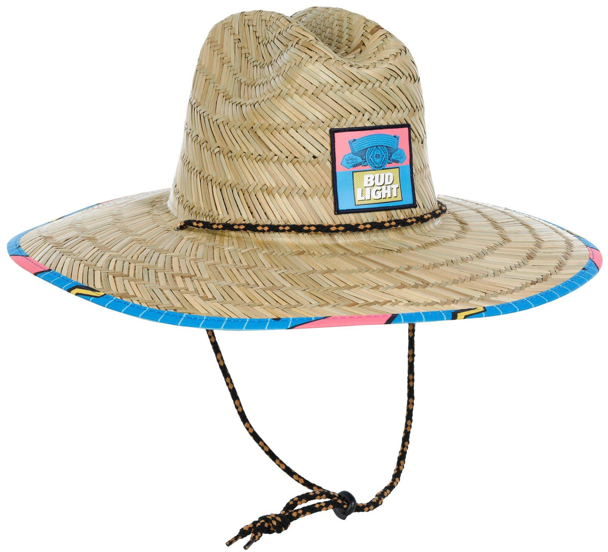 This Straw Lifeguard Hat features a 100% straw woven construction, a front logo patch, a pinched crown, a wide brim, an interior stretch sweatband, and an adjustable chin strap. Brim measures approximately 4.5 in.