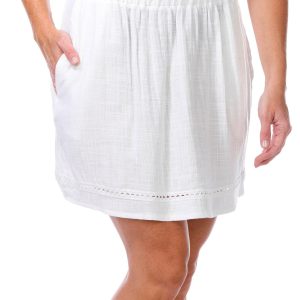 Add effortless charm to your look with the Women’s Crochet Trim Skirt. Featuring a solid color and delicate crochet trim, this pull-on style offers comfort with a flattering fit. Side seam pockets add function, while the 17-inch outseam provides versatile coverage for everyday wear. Fabrication 100% cotton