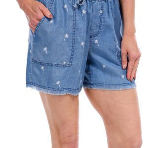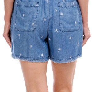 Add a playful touch to your wardrobe with the Palm Tree Print Drawstring Shorts. Featuring a fun palm tree print, these shorts come with double front and back pockets for practical storage. The drawstring waist ensures a comfortable, adjustable fit, while the frayed hem adds a trendy, casual vibe. Inseam measures approximately 5 in. Fabrication is 100% lyocell.
