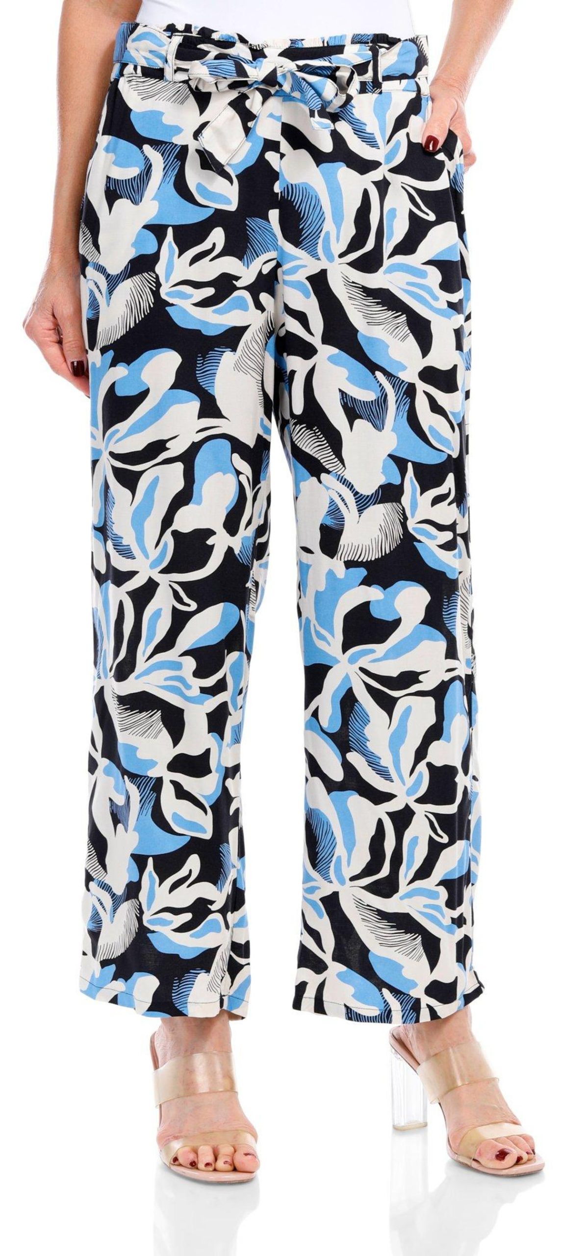 Embrace effortless style with our bohemian-inspired palazzo pants. The wide legs create graceful movement, while the eye-catching print adds a touch of whimsy. These pants come with two convenient side pockets and a removable tie belt for versatile styling. Perfect for warm days and carefree vibes! Inseam measures approximately 25 in. Fabrication is 100% rayon.