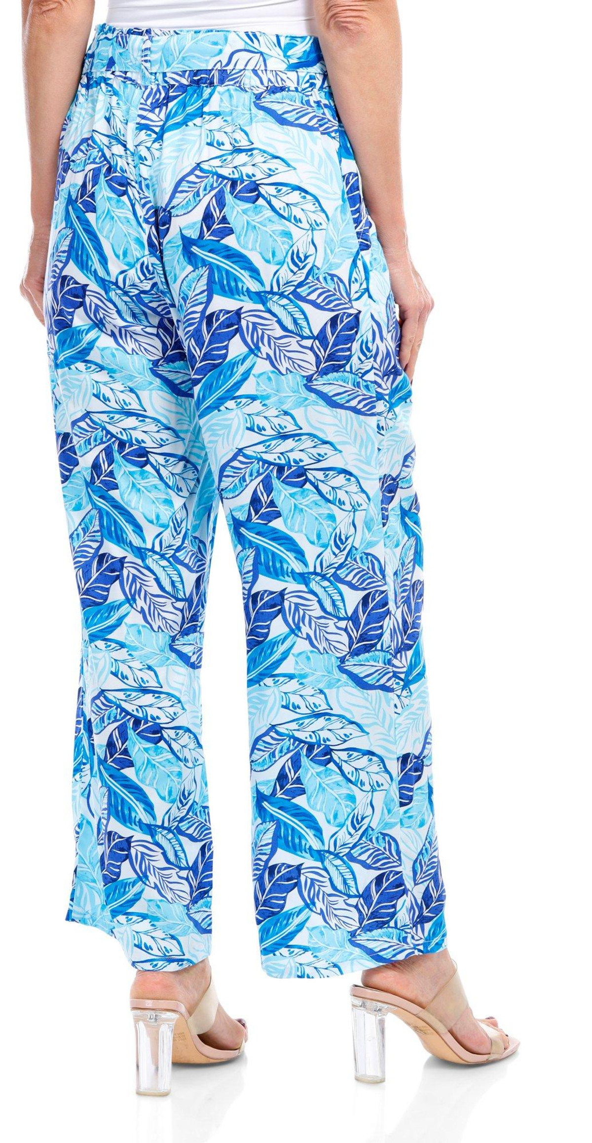 Embrace effortless style with our bohemian-inspired palazzo pants. The wide legs create graceful movement, while the eye-catching print adds a touch of whimsy. These pants come with two convenient side pockets and a removable tie belt for versatile styling. Perfect for warm days and carefree vibes! Inseam measures approximately 25 in. Fabrication is 100% rayon.