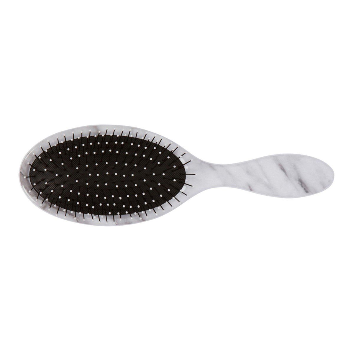 This Wet-N-Dry hair brush is ideal for all hair types, wet or dry. This brush adds shine and smooths hair while gently massaging and stimulating the scalp. Soft, flexible bristles are great for detangling hair with less snagging and breakage. The oval shape and soft, polymer handle makes the brush easy to hold, allowing effortless styling.