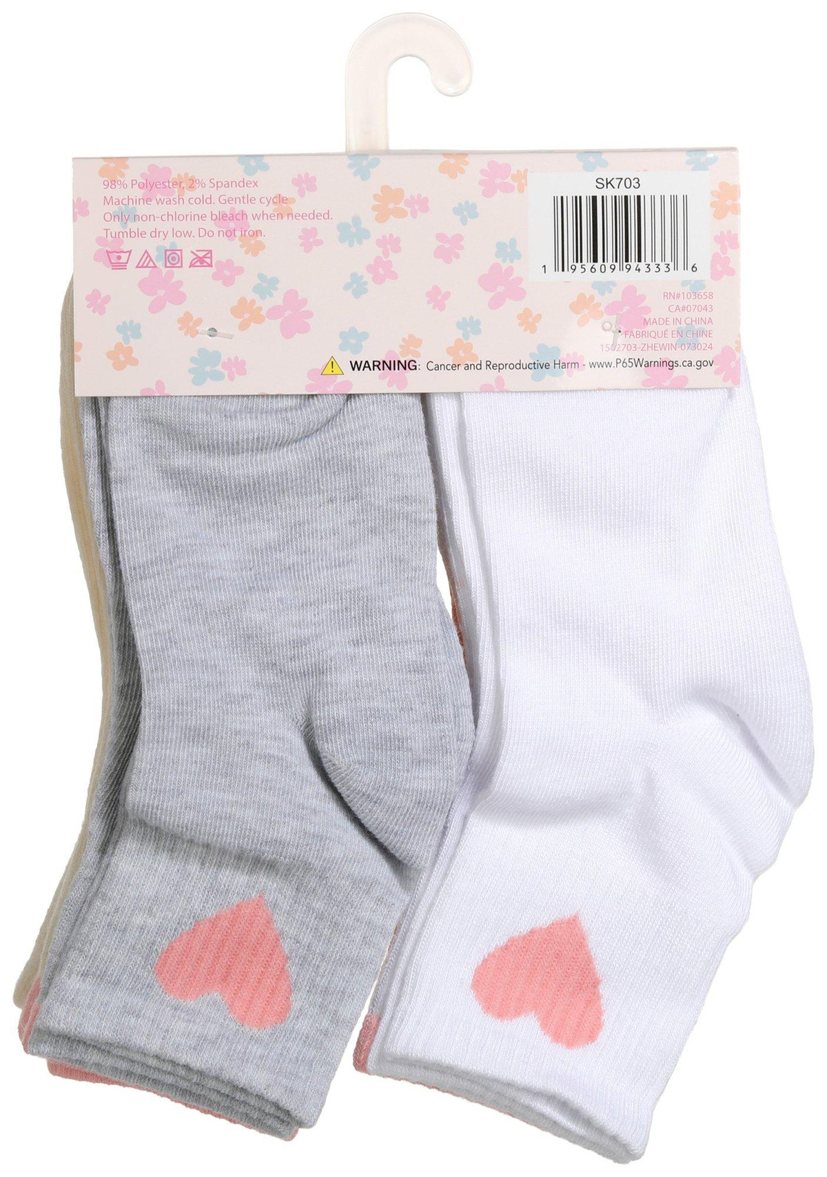 Keep your feet cozy and stylish with the Girls 8 Pk Mid Crew Socks. Made from a soft blend of polyester and spandex, these socks offer comfort and durability. Featuring an adorable heart design, they add a fun touch to any outfit. Perfectly sized to fit girls’ shoe sizes 10.5T-4Y, these mid-crew socks are ideal for everyday wear. Enjoy the perfect combination of style and comfort with this cute and practical sock set.