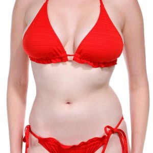 Introducing the Pointelle Triangle Bikini Top, designed with tied adjustable straps for a perfect fit. Crafted from textured pointelle fabric, this bikini top adds a touch of sophistication to your swimwear collection. Ideal for beach days or poolside lounging, its stylish design ensures you stand out in any setting. Elevate your swimwear wardrobe with this chic and versatile piece. Fabrication is 97% polyester, 3% spandex.