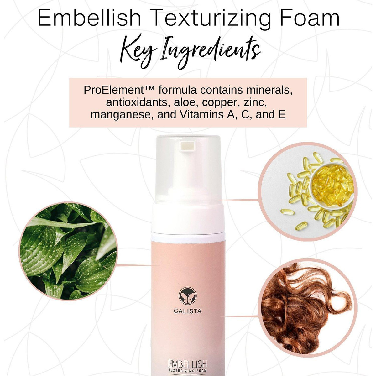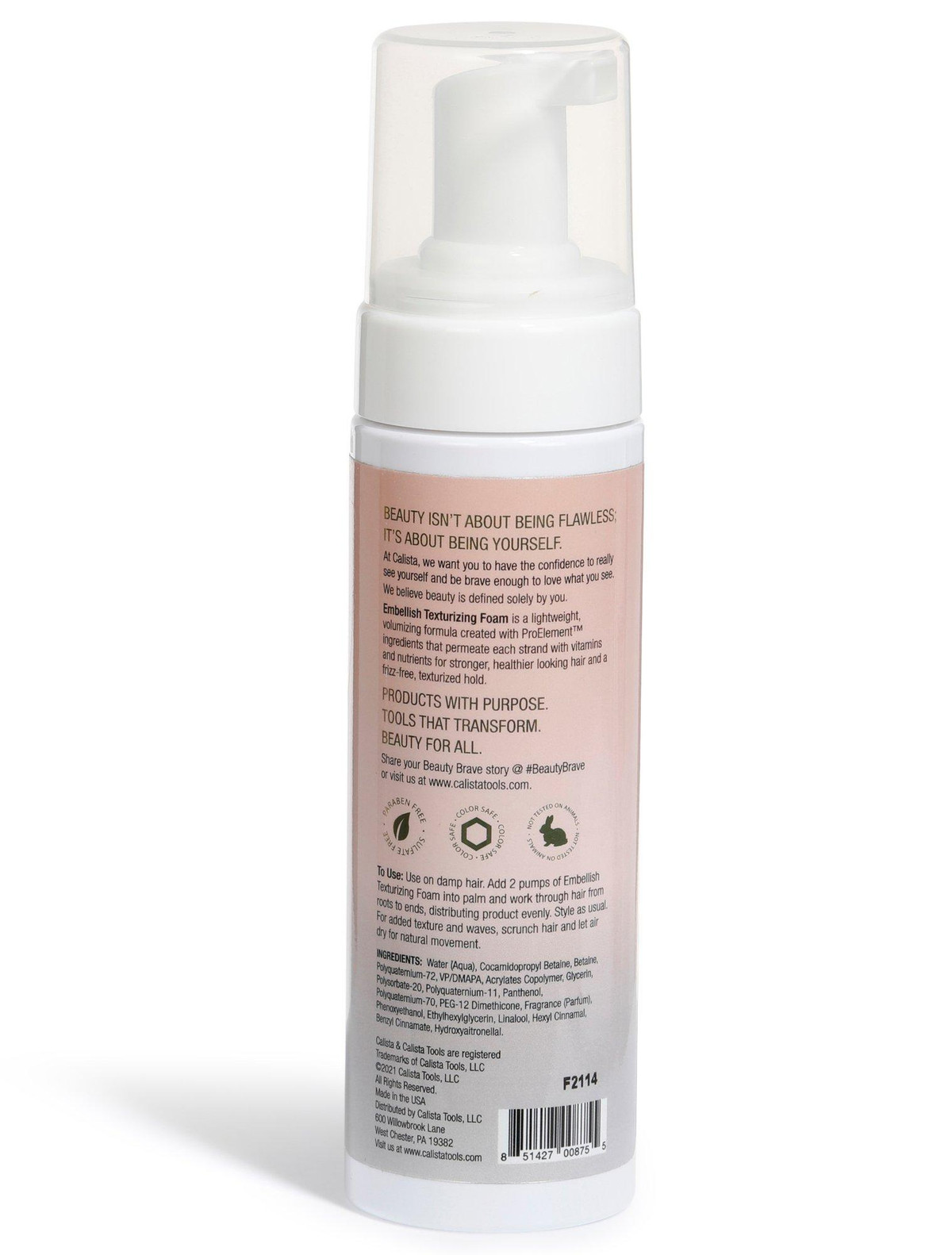 Embellish Texturizing Foam is a lightweight, volumizing formula created with ProElement ingredients that permeate each strand with vitamins and nutrients for stronger, healthier looking hair and a frizz free, texturized hold. 7 OZ.