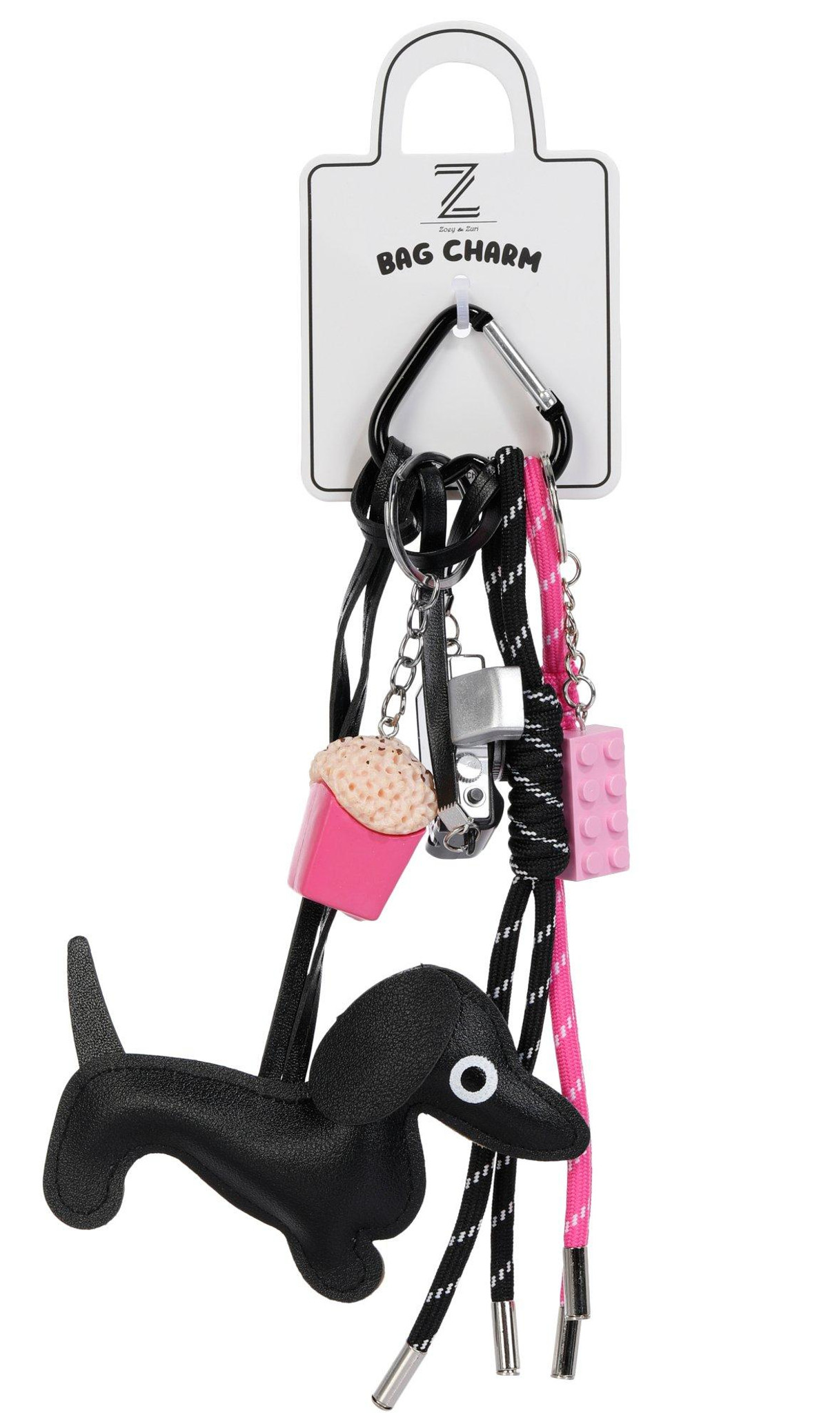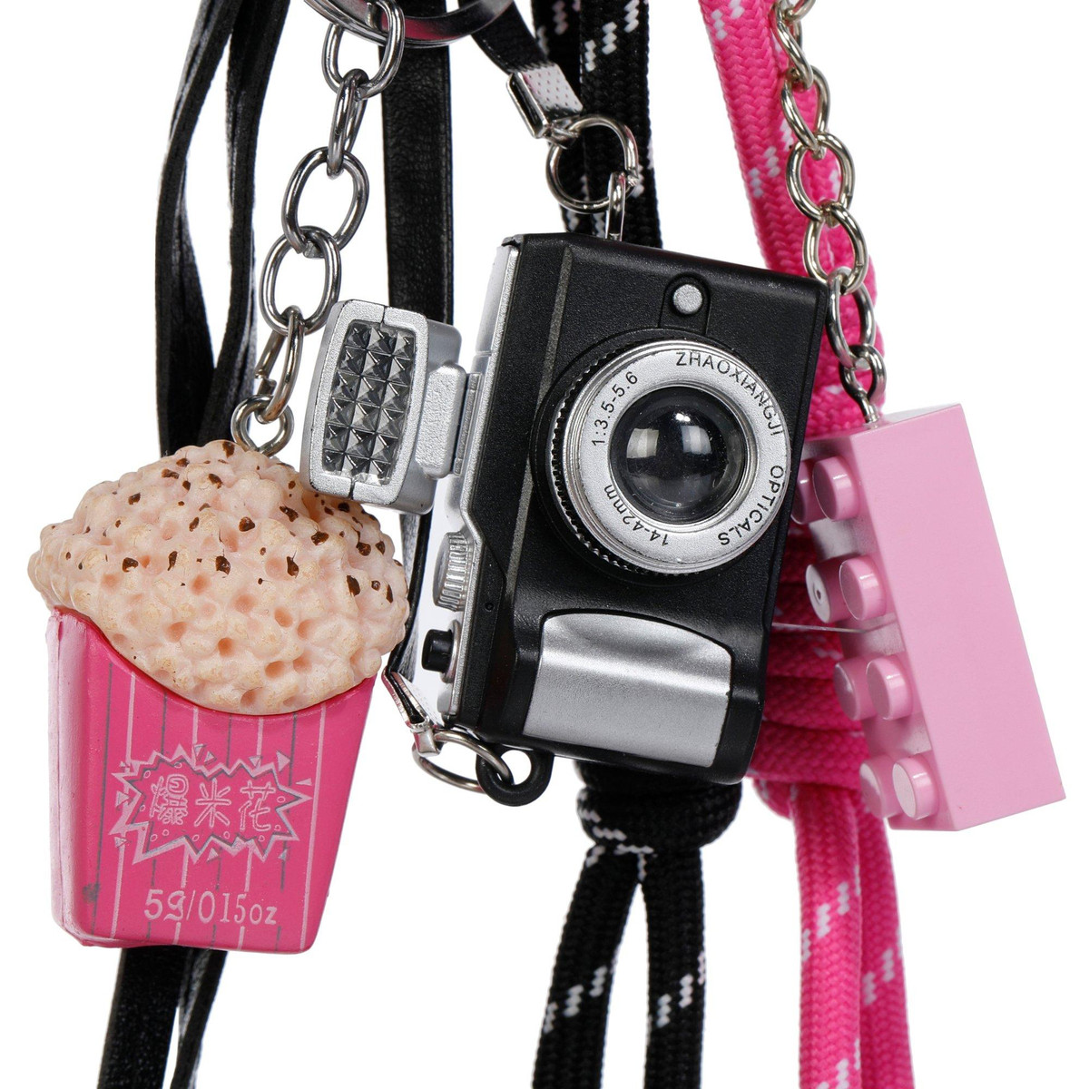 Bag charm set includes 4 fun piecesa black dog, pink Lego block, popcorn, and retro cameraplus shoelace charms on a heart-shaped carabiner. Designed in the USA in pink and black, this charm combo adds personality to book bags, Bogg Bags, or any purse. A playful way to show off your style and keep your accessories fresh.