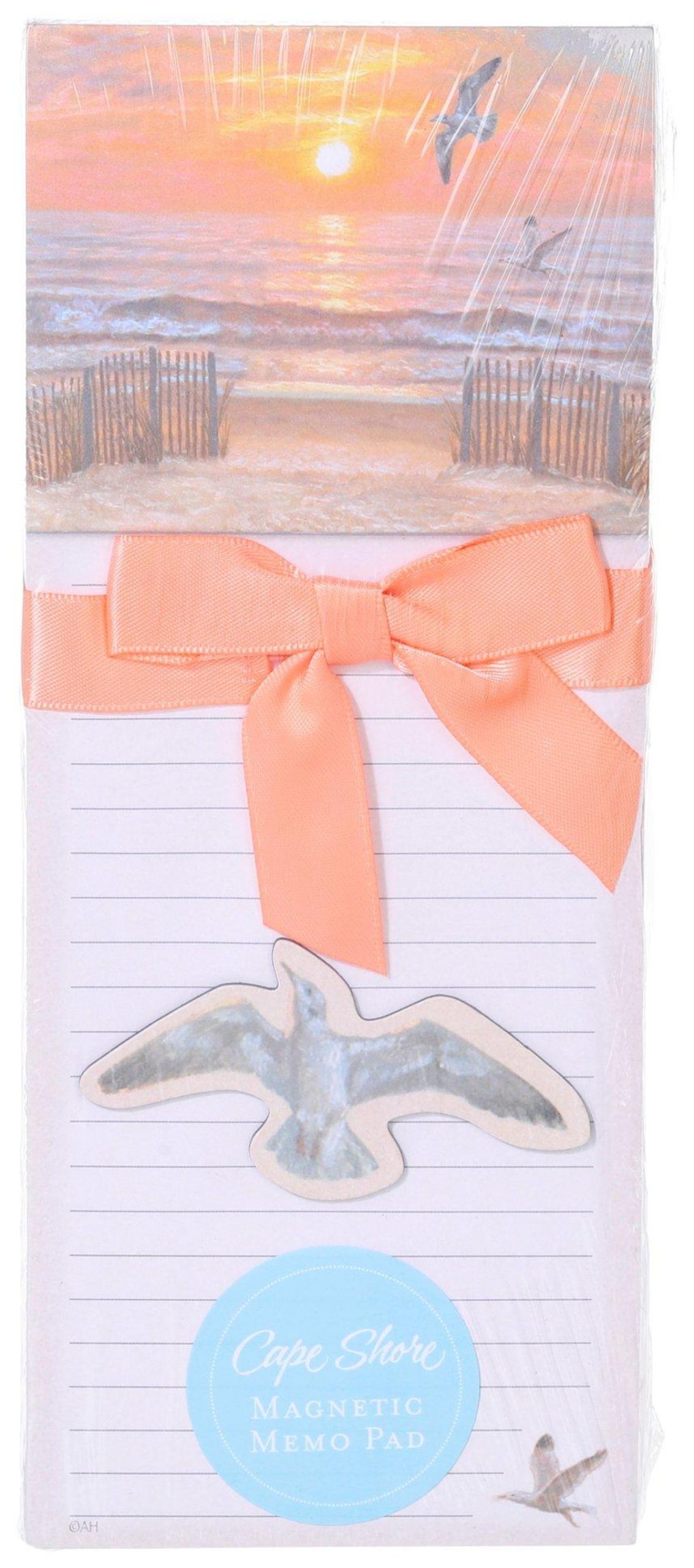 This 2 pack of magnetic memo pads features a seagull and beach scene, bringing a coastal vibe to everyday lists and reminders. With a strong magnetic backing, these pads stay securely on refrigerators or other metal surfaces, keeping notes easy to see and within reach. Measures approximately 8.5 in x 3.5 in.