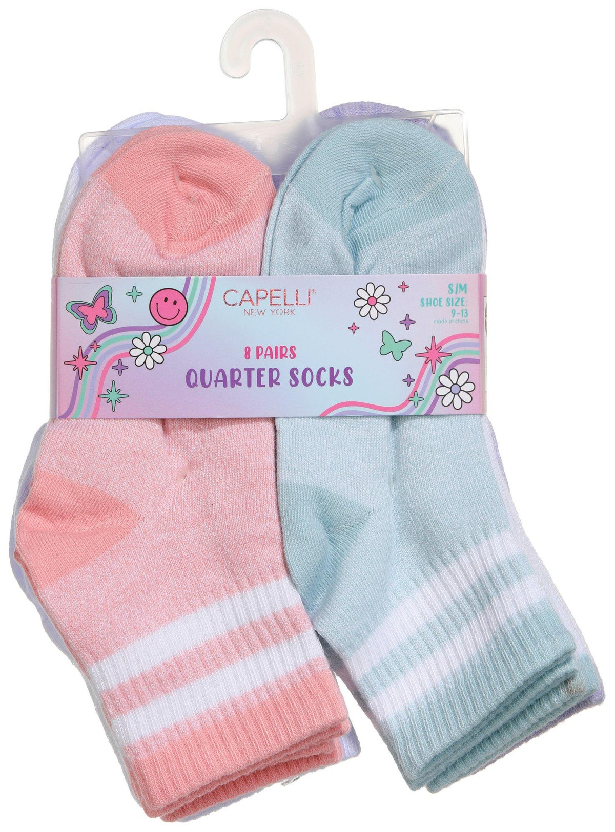 Keep your feet comfortable and stylish with the Girls 8 Pk Quarter Crew Socks. Made from a soft blend of polyester and spandex, these socks offer durability and a snug fit. Featuring assorted colors, they add a fun and vibrant touch to any outfit. Designed to fit shoe sizes 9T-13Y, these quarter crew socks are perfect for everyday wear. Enjoy the perfect combination of comfort and style with this versatile sock set.