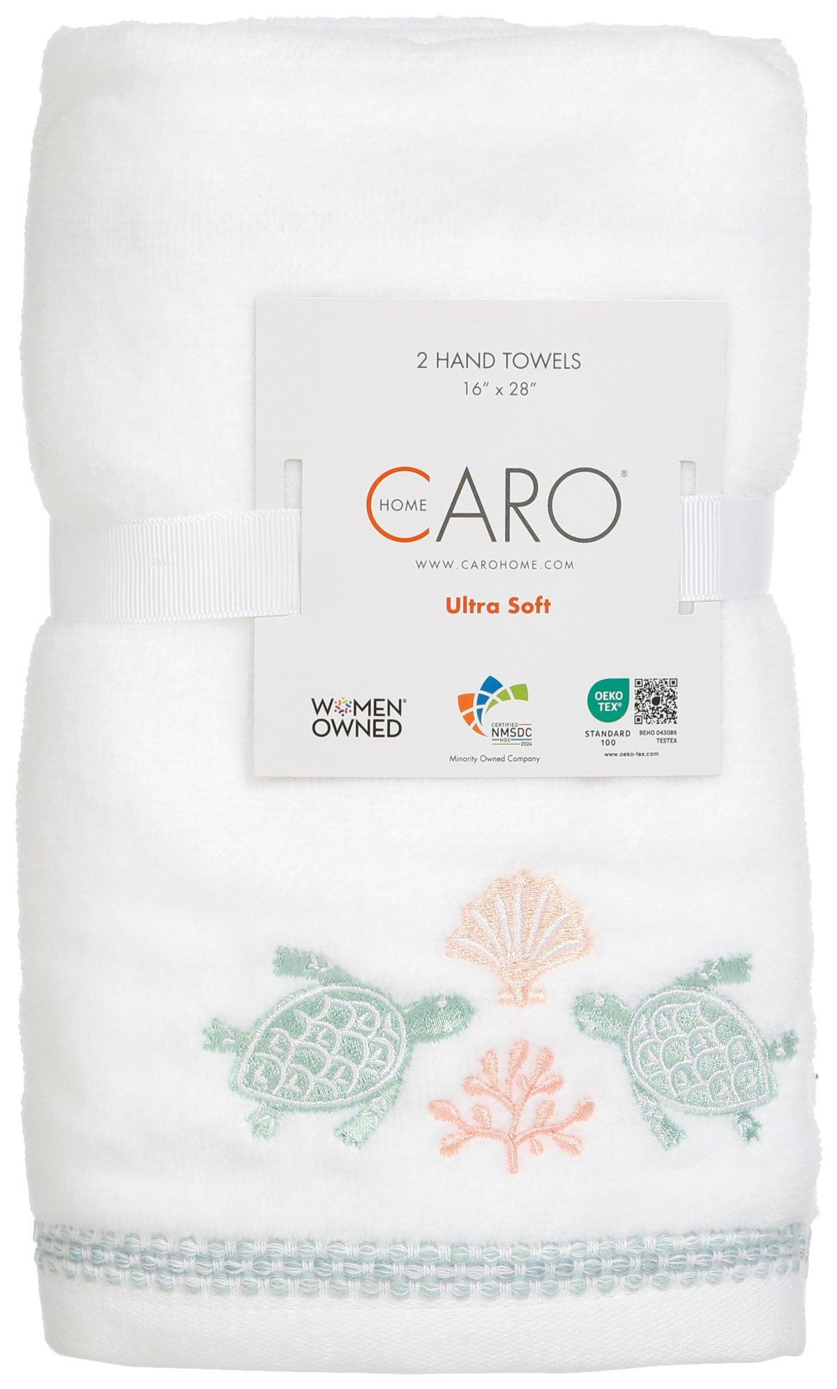 Caro Home 2 Pk Sea Turtle Embroidery Ultra Soft Hand Towels